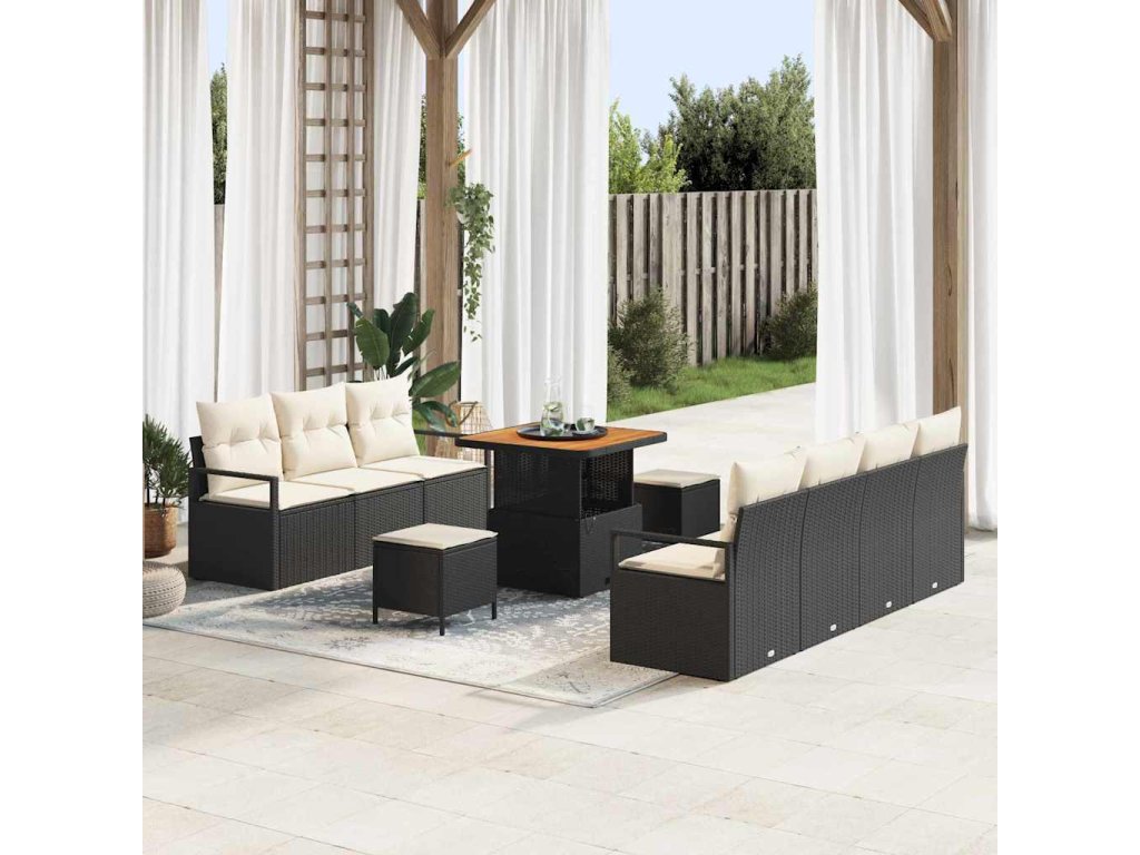 Sada zahradních pohovek s polštářem 10 pcs Černá a krémová [3364435]