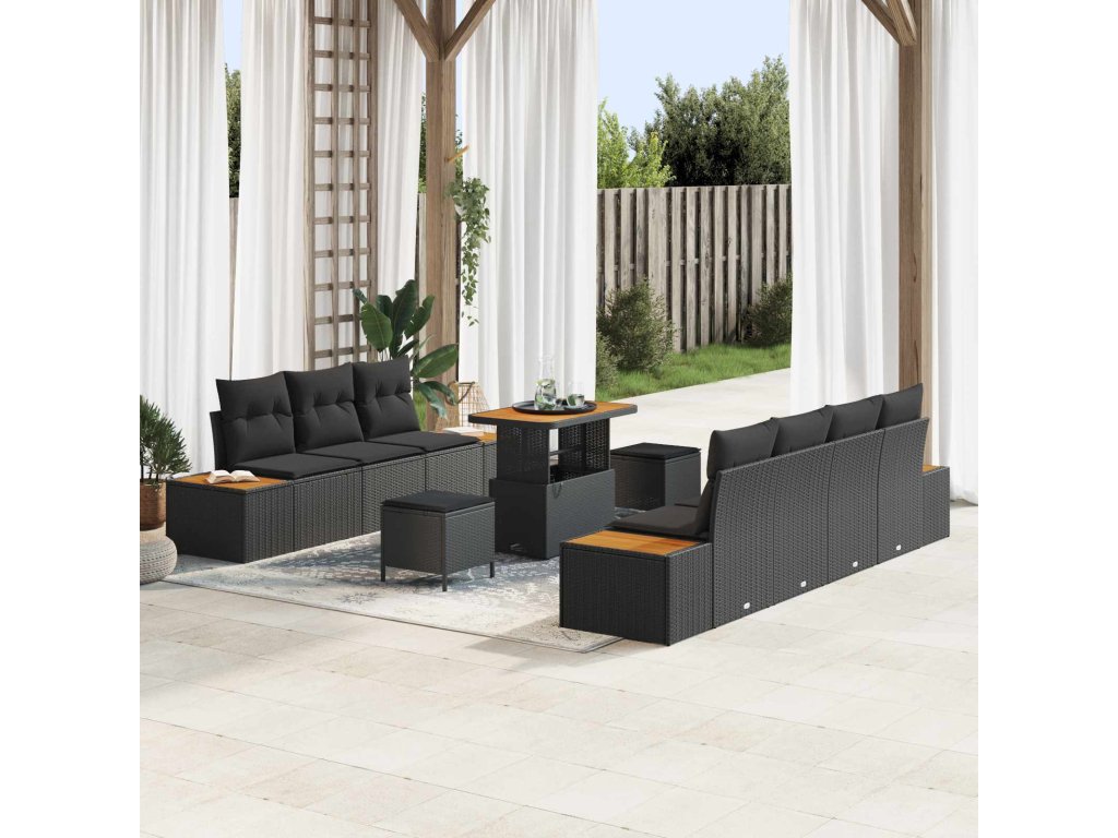 Sada zahradních pohovek s polštářem 10 pcs Černá Poly ratan [3364829]