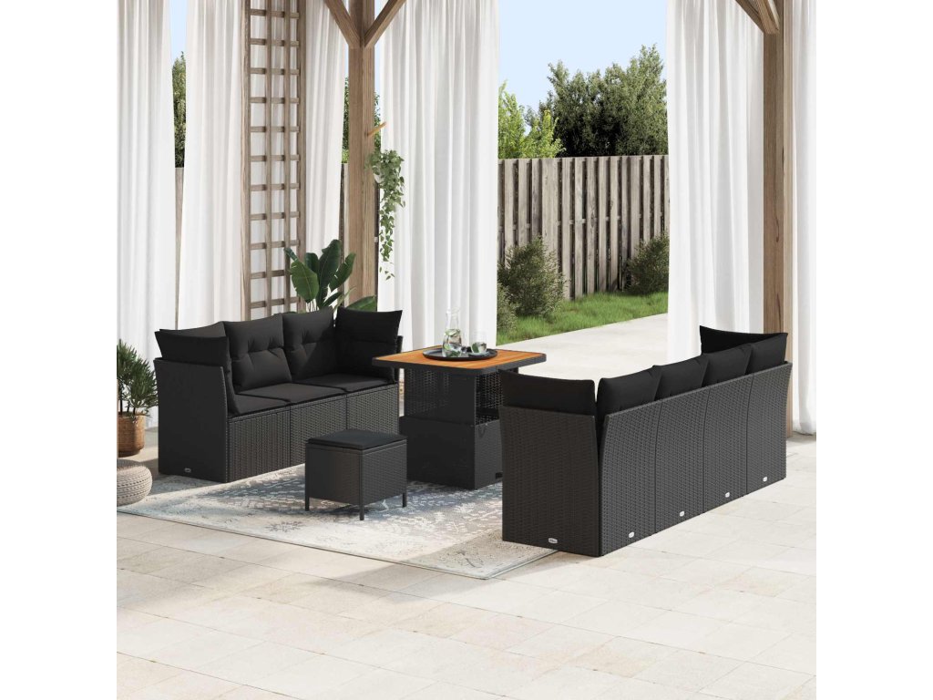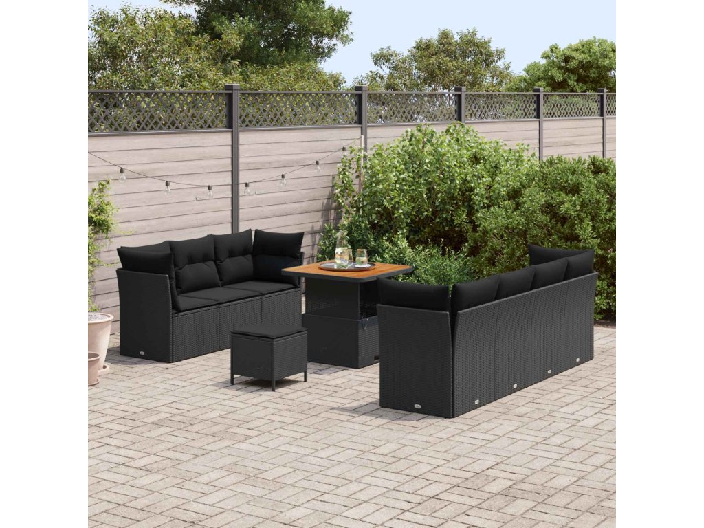 Sada zahradních pohovek s polštářem s úložištěm 10 pcs Černá [3363394]