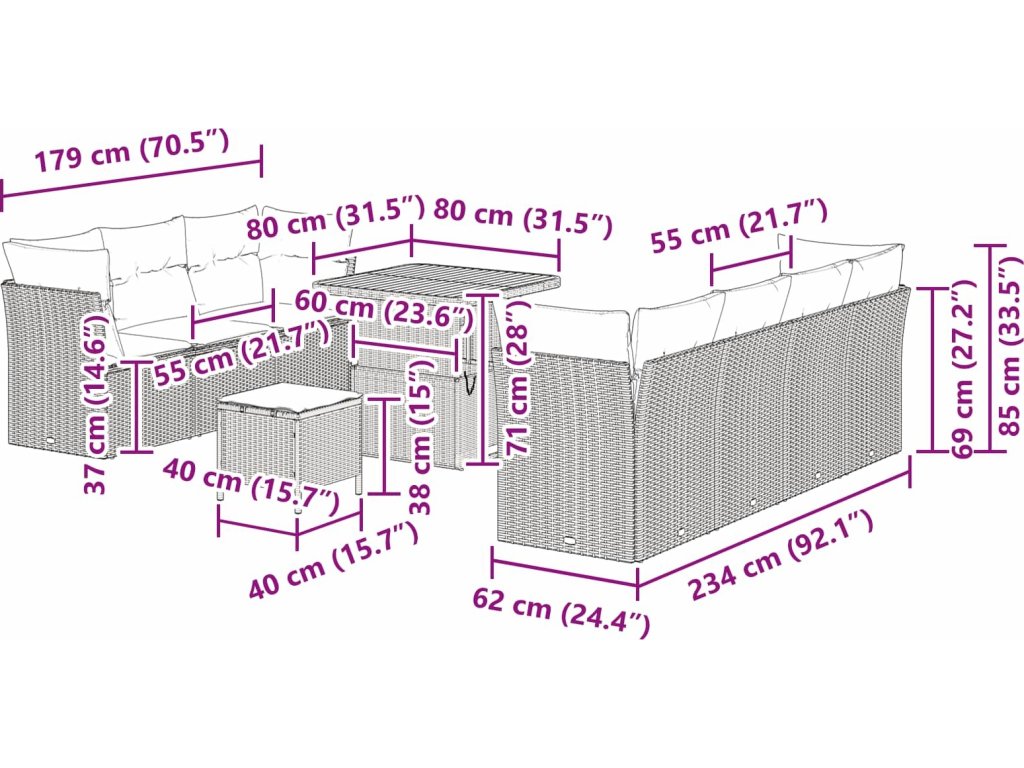 Tento modulární zahradní sofa set přidává elegantní nádech na každou terasu nebo venkovní prostor. Jeho čistý design se skvěle hodí do moderních interiérů a nabízí spoustu funkčnosti. Každý díl je navržen pro maximální pohodlí a flexibilitu, takže si můžete uspořádat sezení podle potřeby.