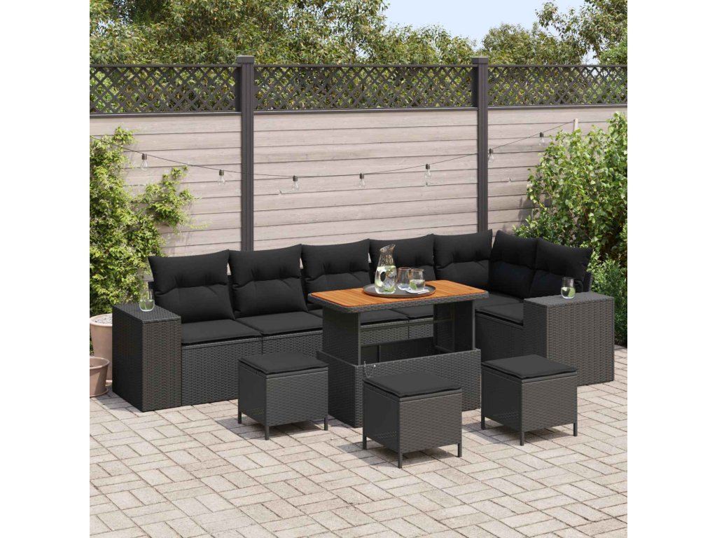 Sada zahradních pohovek s polštářem 10 pcs Černá polyratan [3362029]