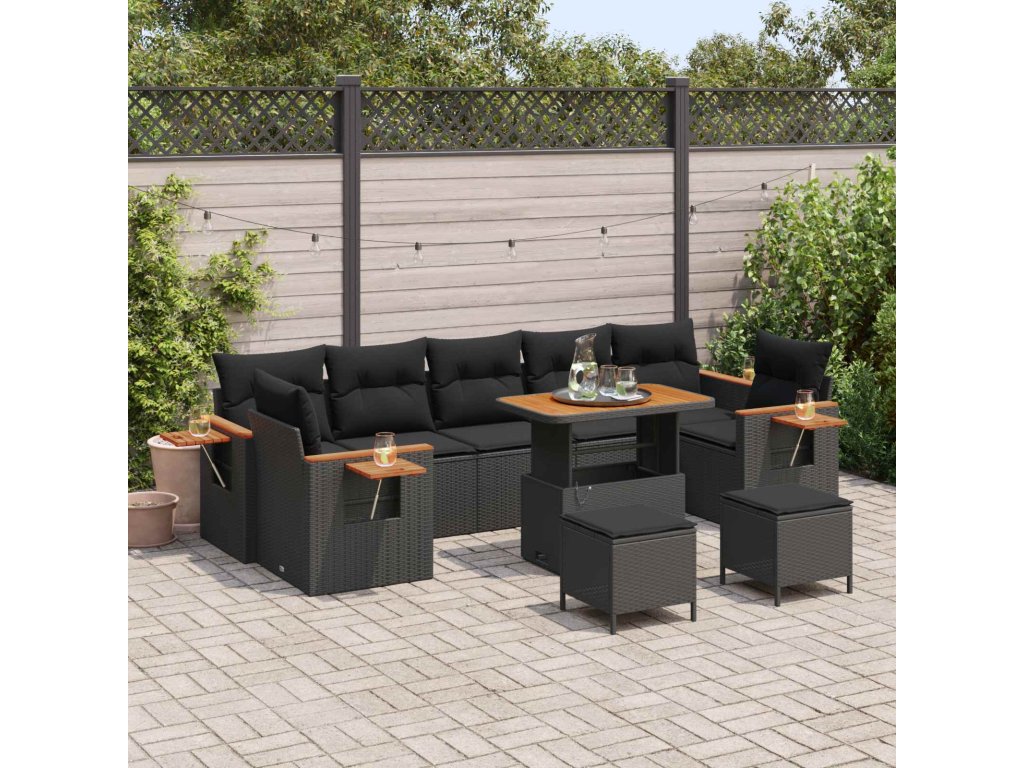 Sada zahradních pohovek s polštářem 10 pcs Černá [3363159]