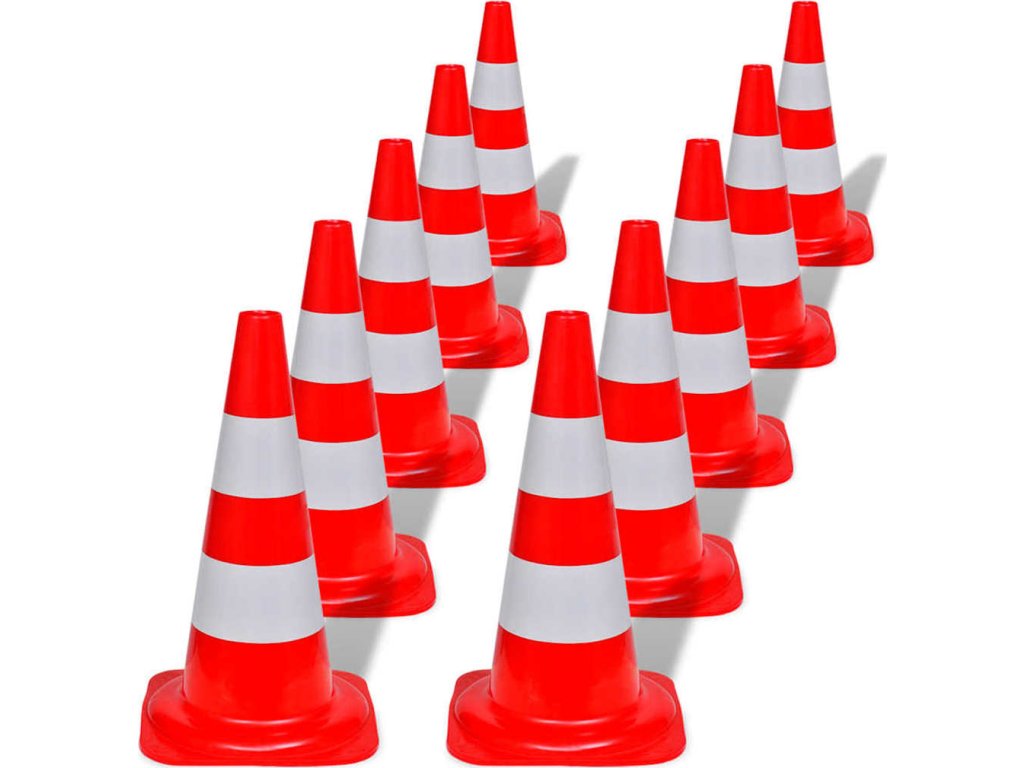 - Balení obsahuje 10 reflexních dopravních kuželů