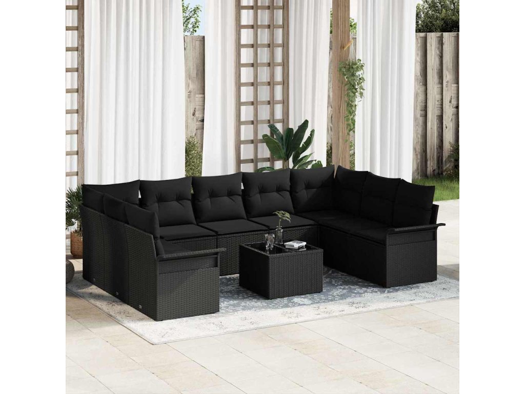 Sada zahradních pohovek s úložištěm 10 pcs Béžová polyratan [3354202]