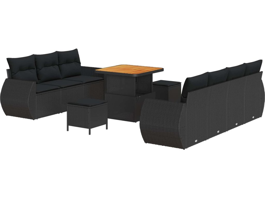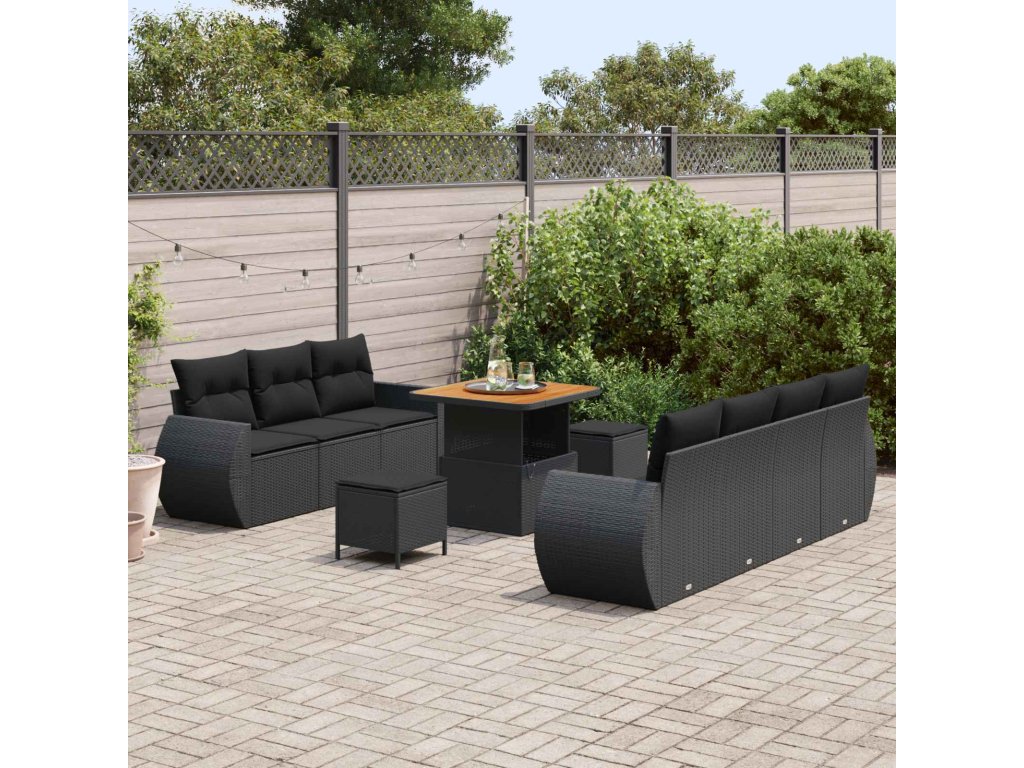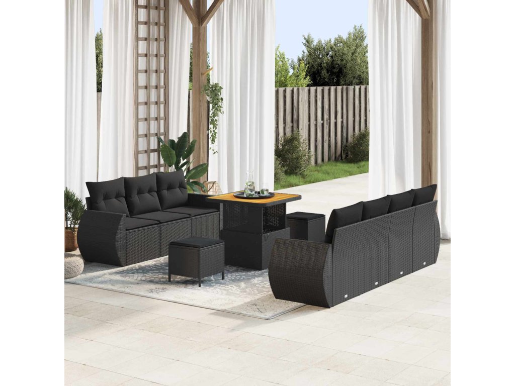 Sada zahradních pohovek s polštářem 10 pcs Černá polyratan [3363784]