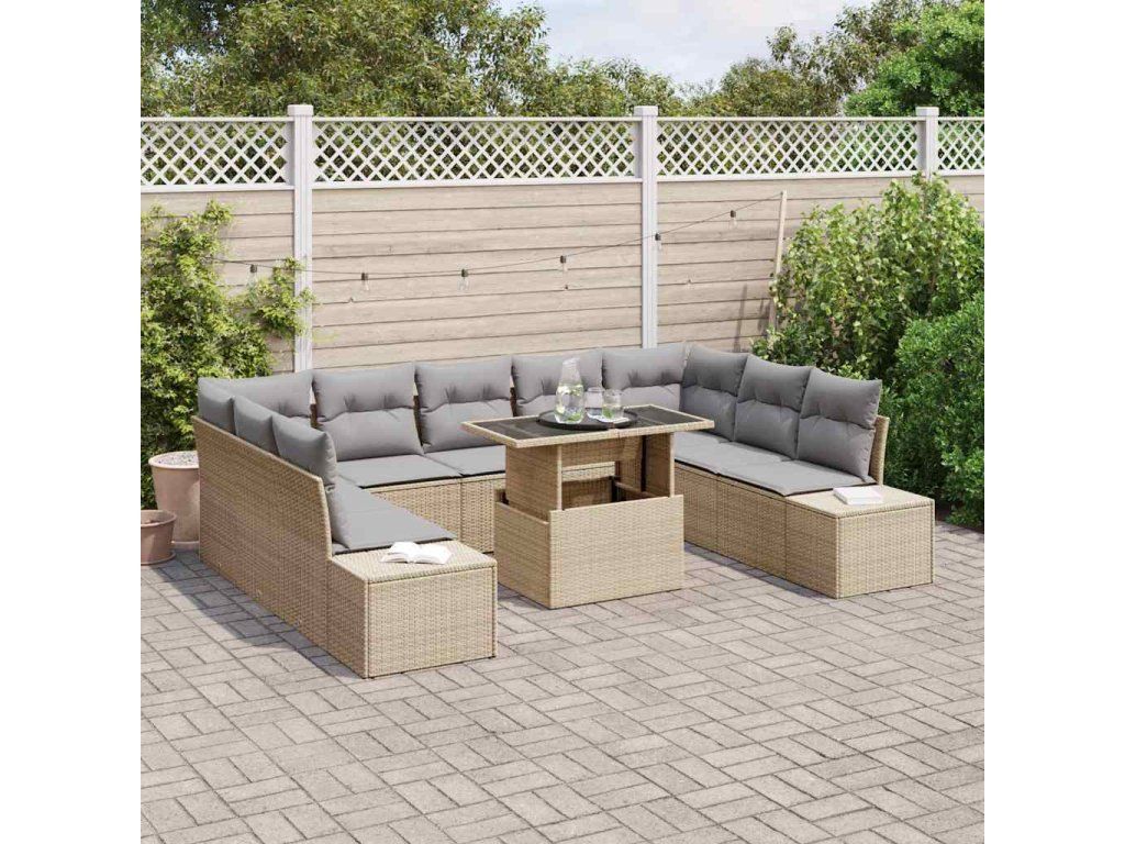 Sada zahradních pohovek s polštářem 10 pcs béžová a světle šedá [3349246]