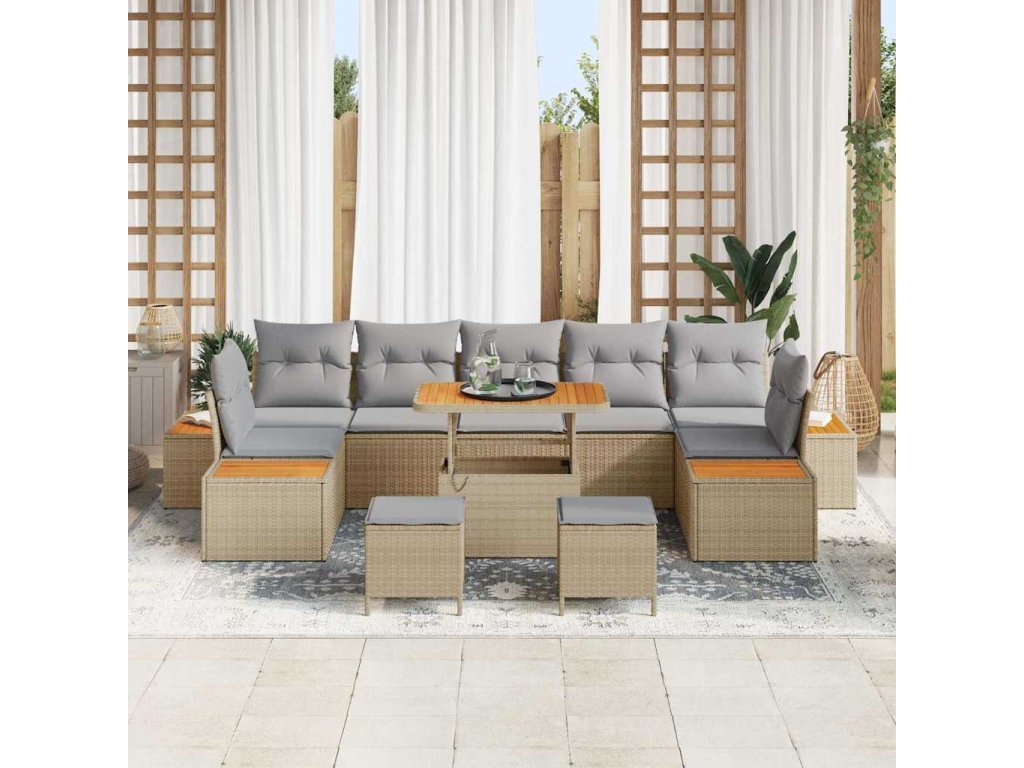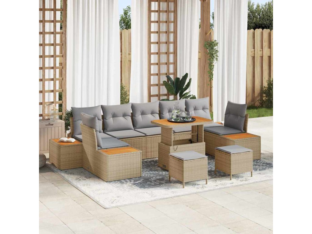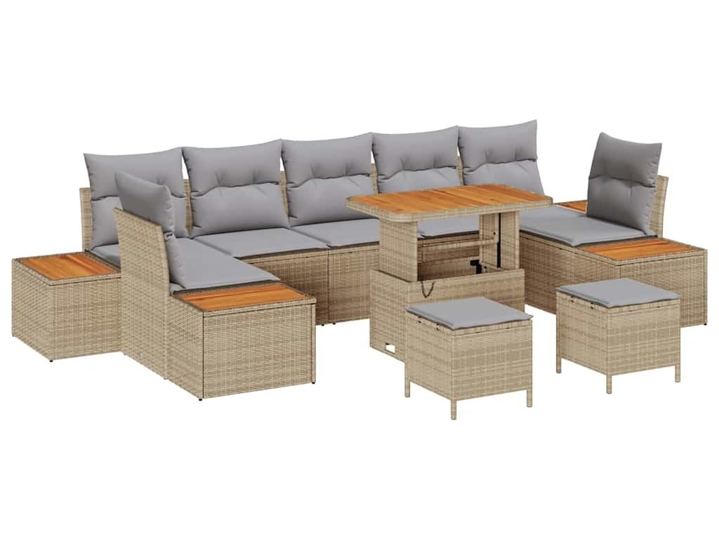Sada zahradních pohovek s polštářem 10 pcs Béžová Poly ratan [3364852]