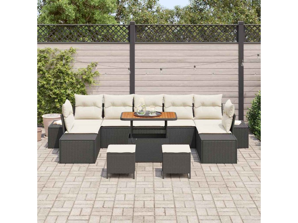Sada zahradních pohovek s polštářem 10 pcs Černá Poly ratan [3364720]
