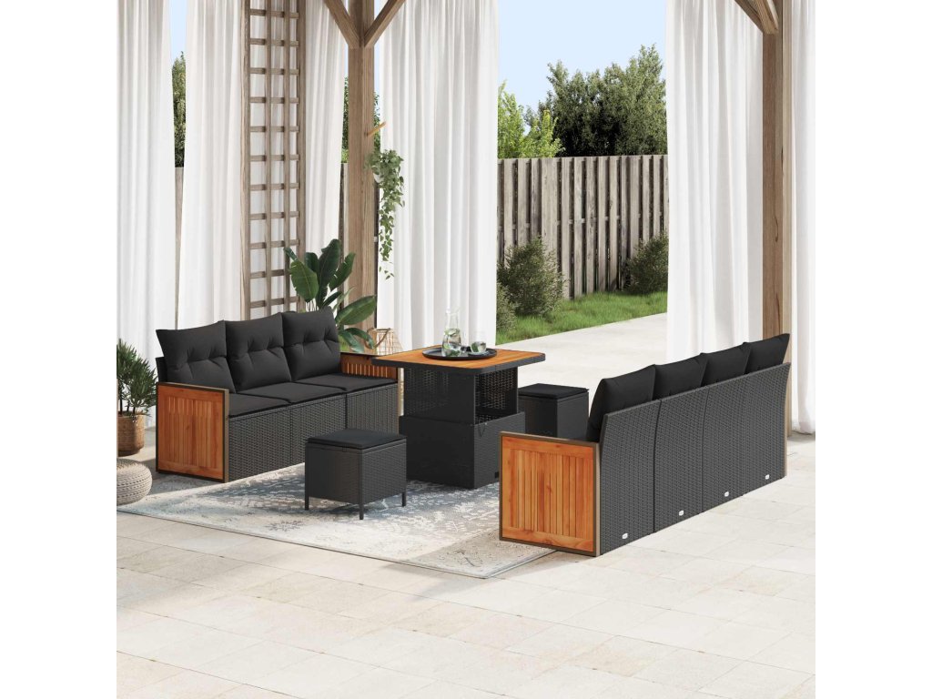 Sada zahradních pohovek 10 pcs Černá a hnědá polyratan [3365214]