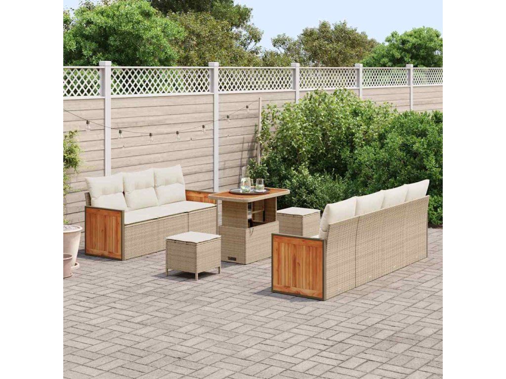 - Odolná konstrukce Tento modulární zahradní set z UV-odolného polyratanu zvládne silné slunce a dlouho si udrží svůj vzhled. Je odolný vůči povětrnostním podmínkám a je tak skvělou volbou pro venkovní použití. Spojení polyratanu a akáciového dřeva poskytuje trvanlivost a eleganci, takže vám set vydrží na jaře a v létě.