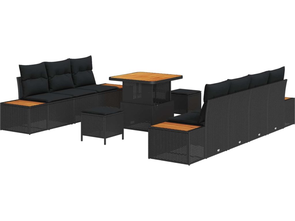 Sada zahradních pohovek s polštářem 10 pcs Černá Poly ratan [3364824]