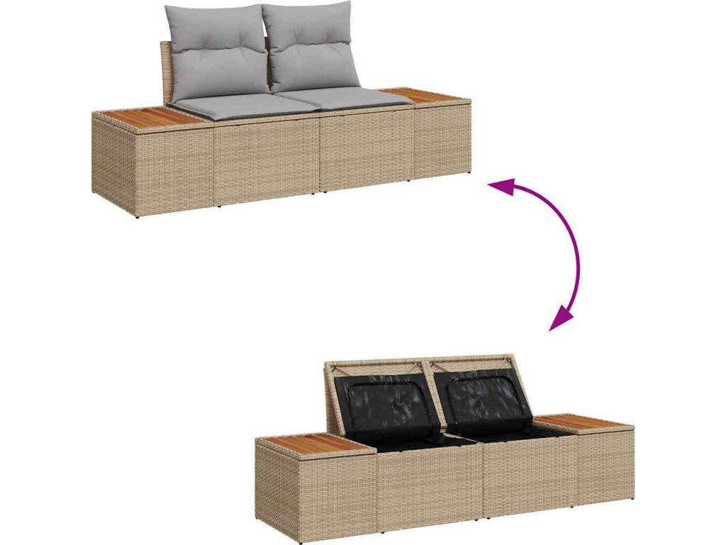 - Integrované úložiště: Zahradní sofa má schované přihrádky, co nabízejí spoustu místa na polštáře, deky nebo venkovní nezbytnosti. Tyhle místa pomáhají udržet vše v pořádku a zlepšují vzhled vaší zahrady, zatímco řeší každodenní potřeby.