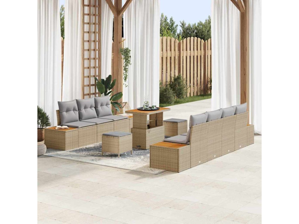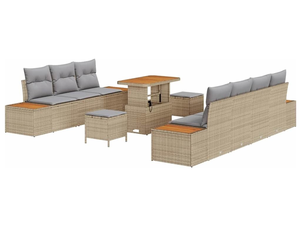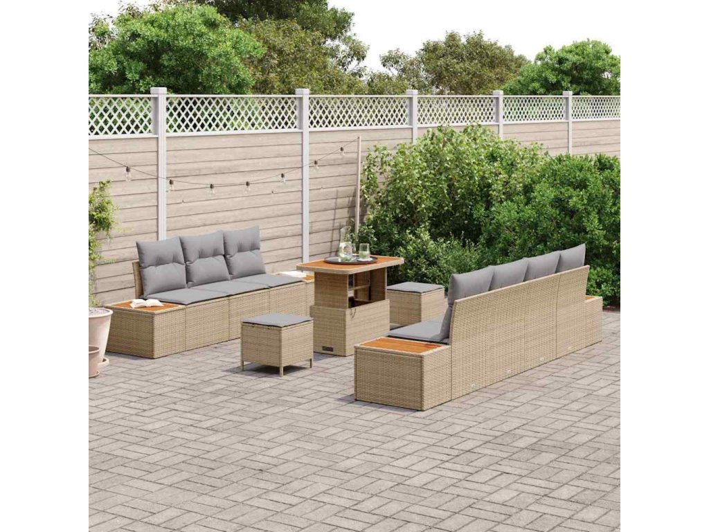 Sada zahradních pohovek s polštářem 10 pcs Béžová Poly ratan [3364832]