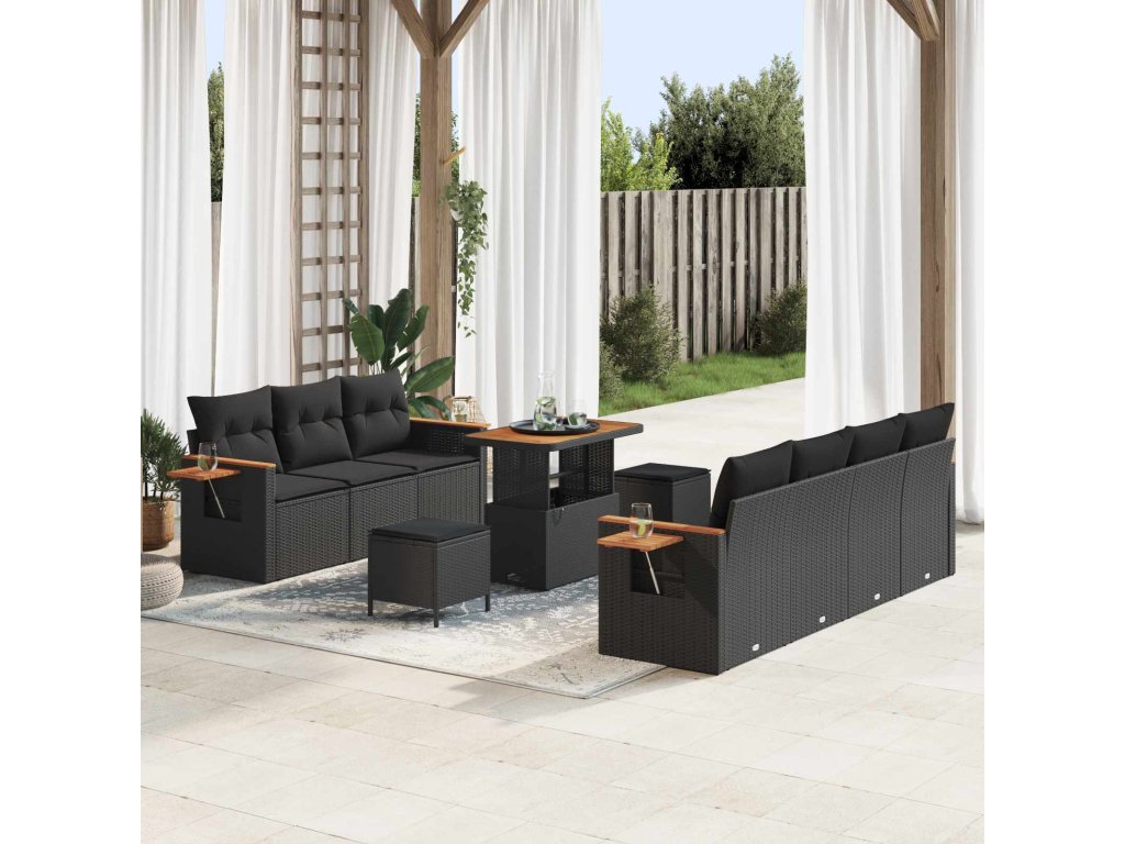 Sada zahradních pohovek s polštářem 10 pcs Černá [3363139]