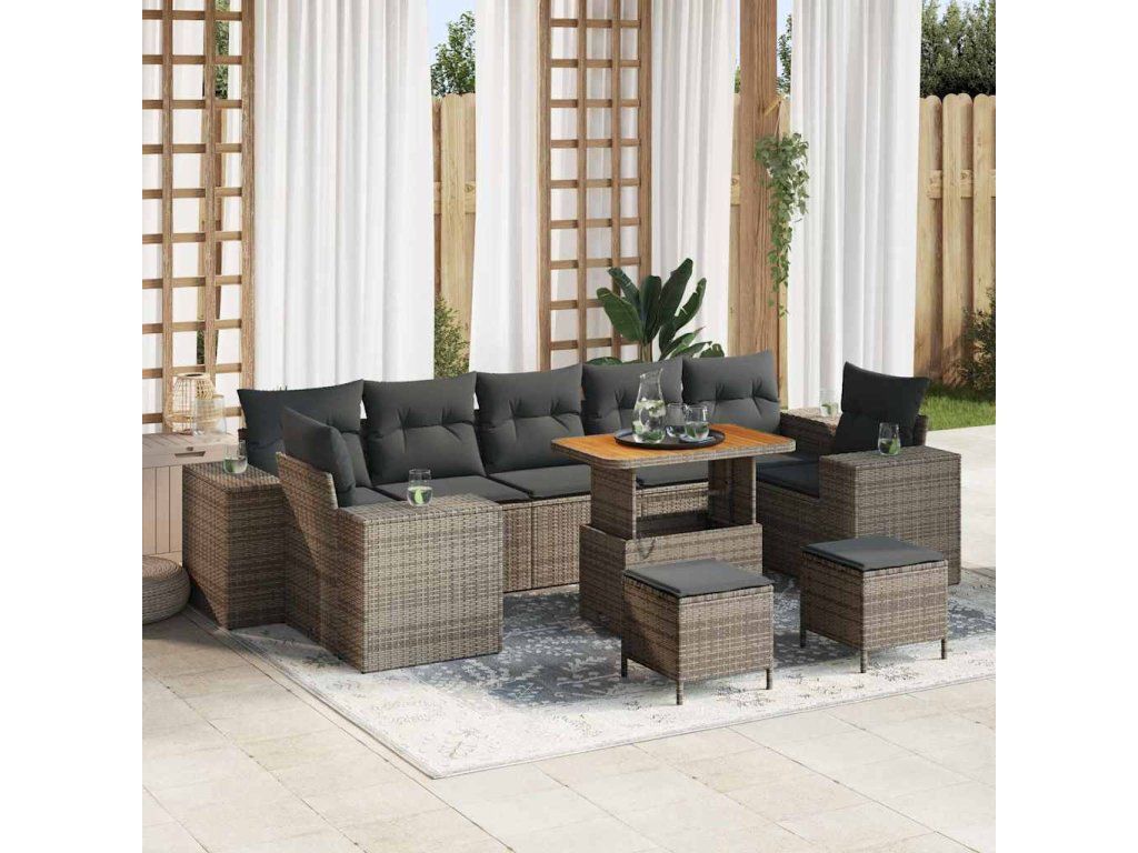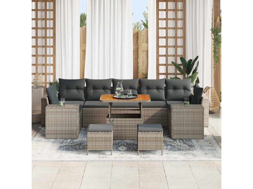 Tento modulární zahradní set je symbolem moderní elegance a flexibility, navržený pro ty, co chtějí styl i funkčnost venku. Ideální pro velké terasy nebo útulné zahrady, set spojuje prémiový poly ratan a solidní akáciové dřevo, což vytváří vítající atmosféru. Jeho flexibilní design umožňuje nastavit set podle potřeby pro večírky nebo relaxaci. S elegantním a moderním profilem se snadno hodí všude a zaručuje pohodlí a třídu na každém setkání.