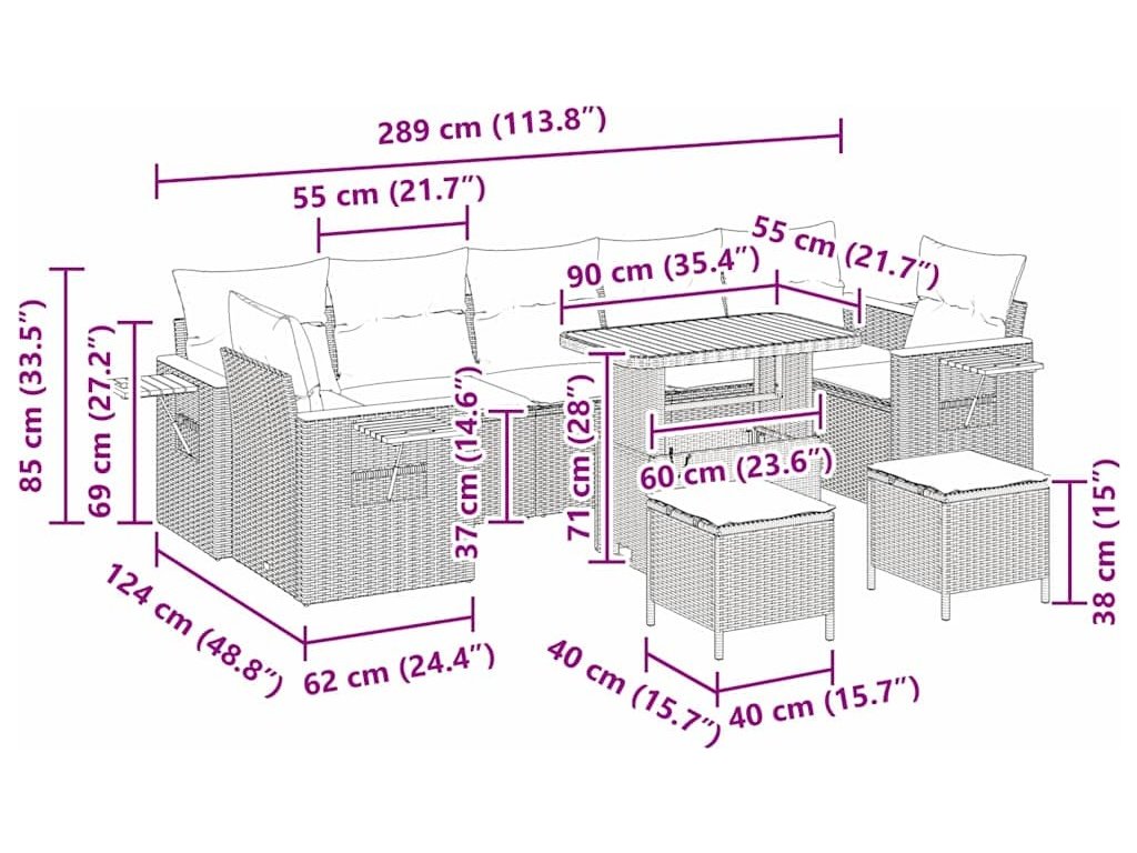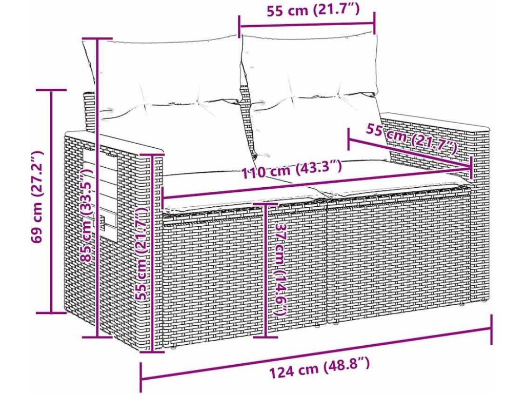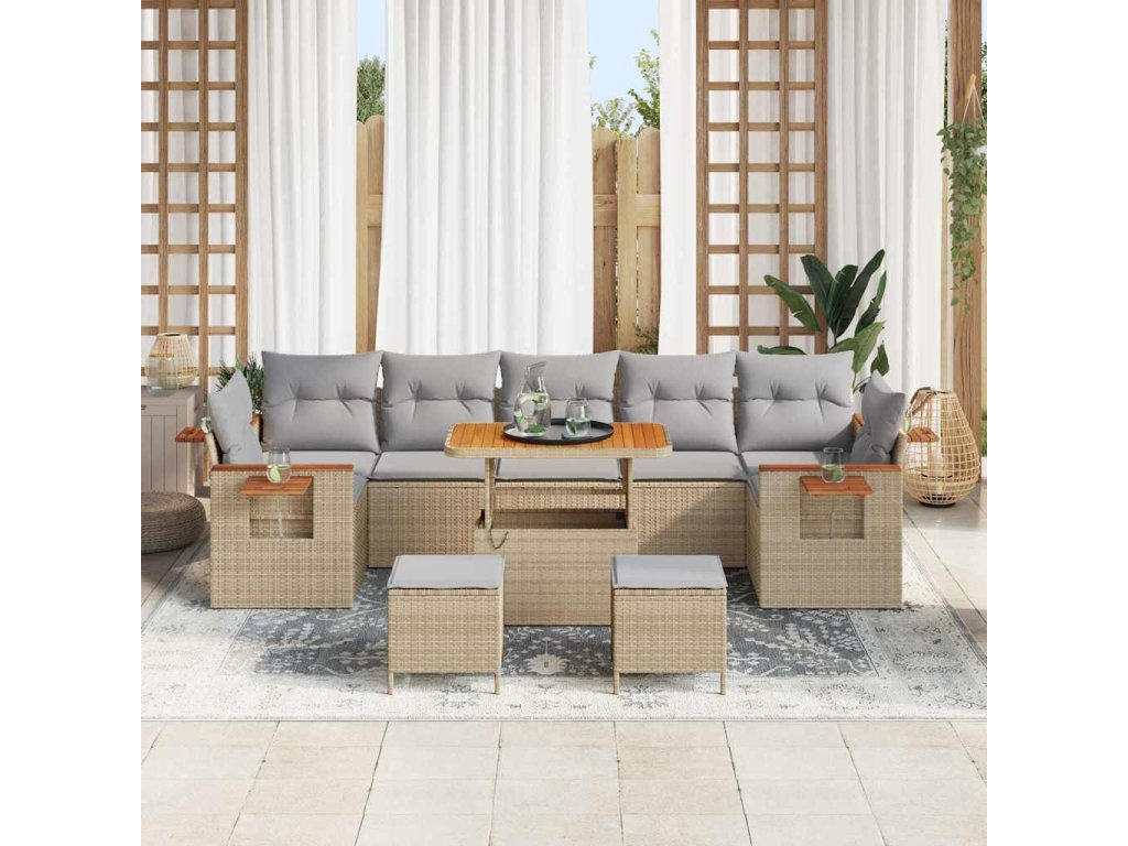 Tento zahradní sofa set s polštáři spojuje moderní vzhled s odolností, což z něj dělá ideální přírůstek do vašeho venkovního prostoru. S jeho modulárním designem si ho snadno přizpůsobíte ať už na rodinné posezení, nebo sváteční grilovačku.