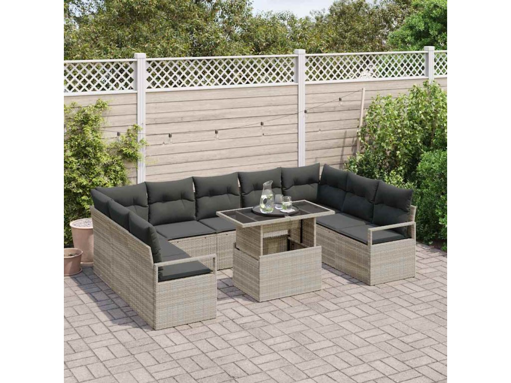Sada zahradních pohovek 10 pcs Světle šedá polyratan [3348888]