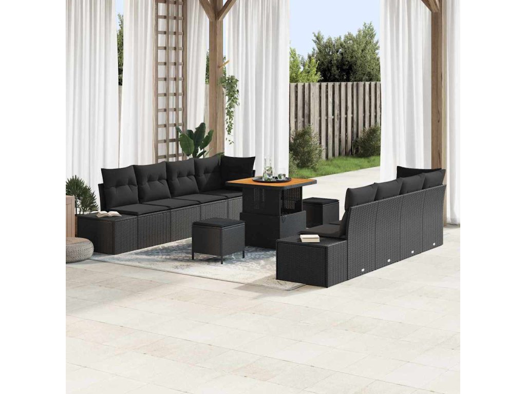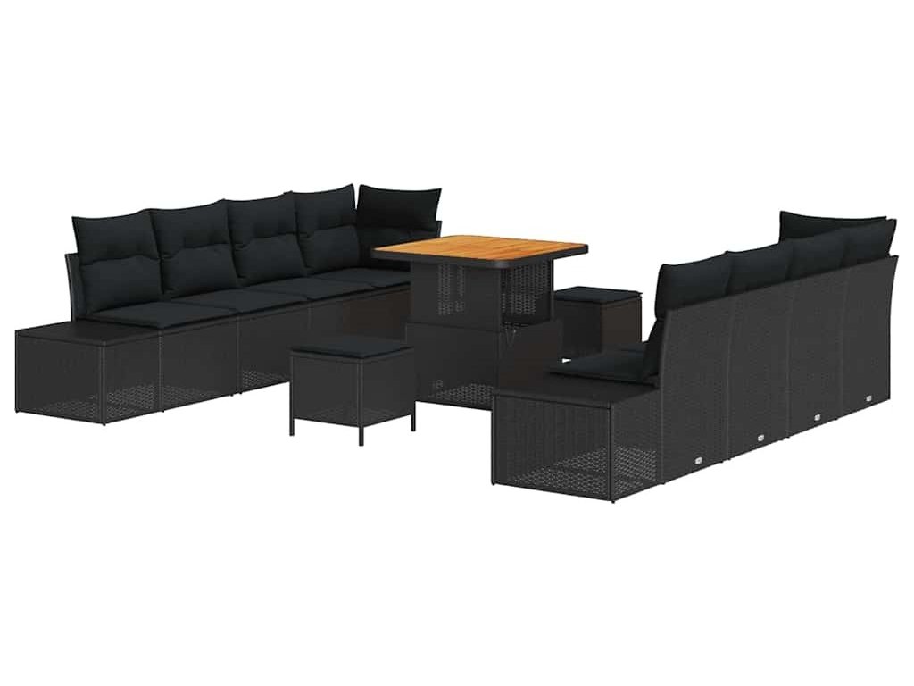 Sada zahradních pohovek s polštářem s úložištěm 11 pcs Černá [3364704]