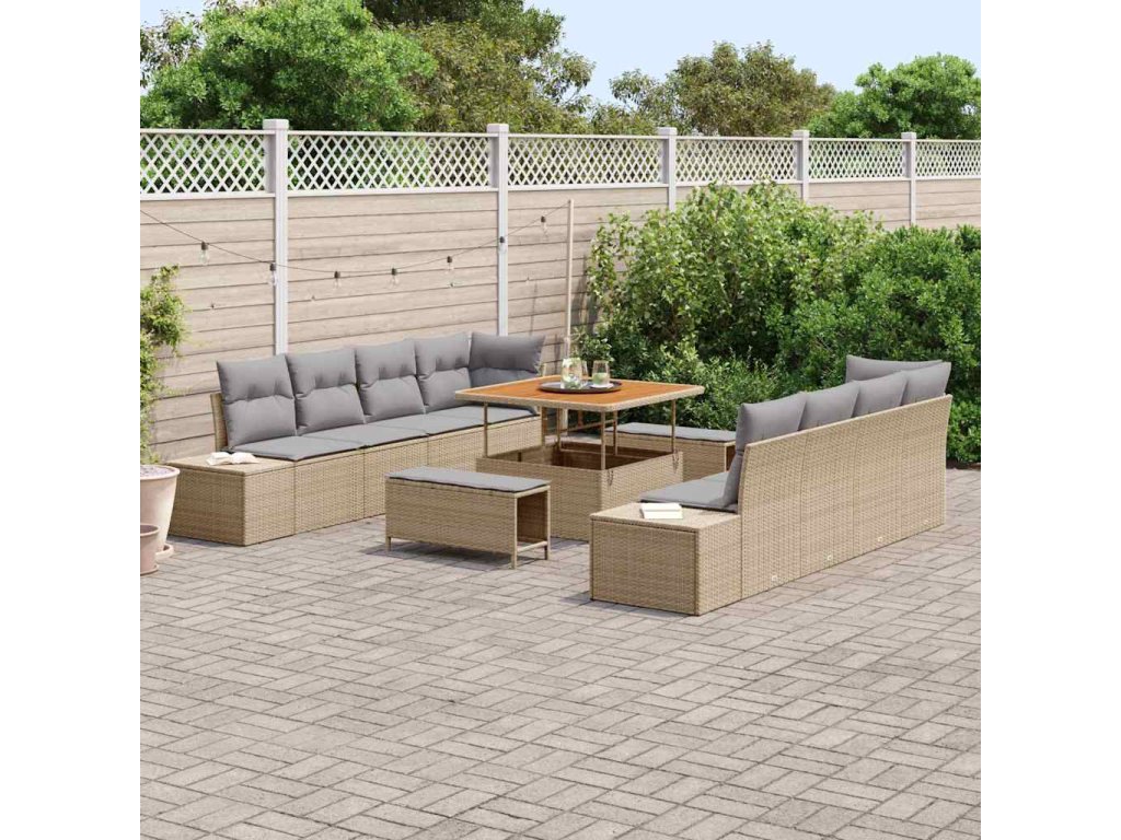 Sada zahradních pohovek s polštářem 11 pcs Béžová Poly ratan [3364717]