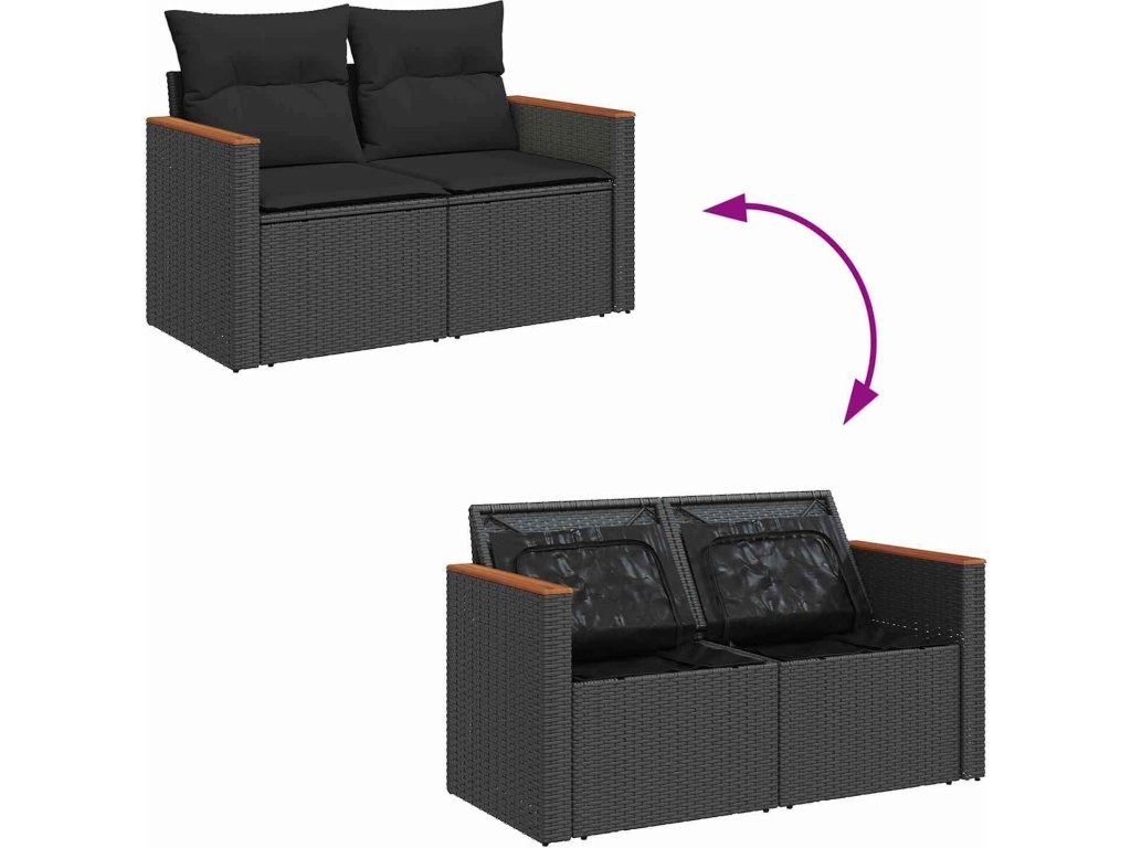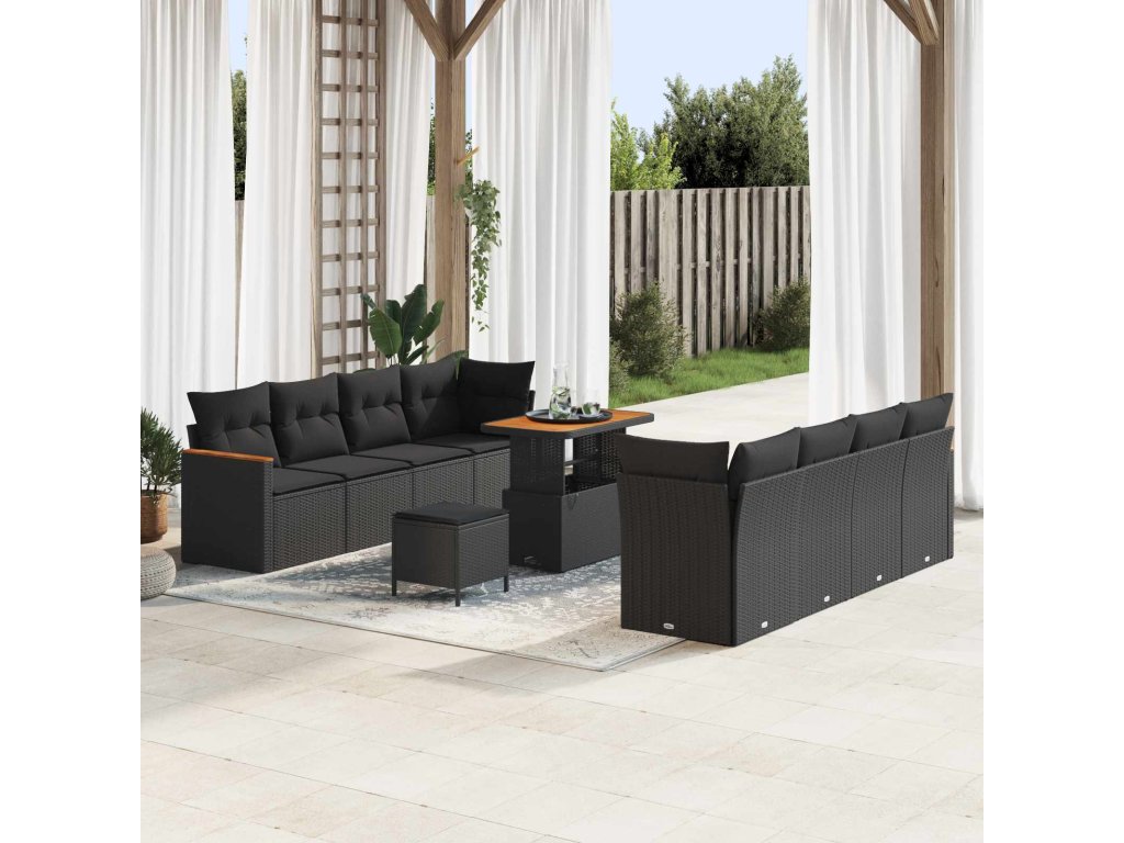 Sada zahradních pohovek s polštářem 12 pcs Černá polyratan [3364969]