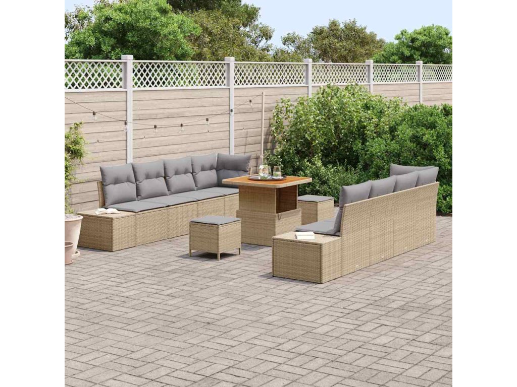 Sada zahradních pohovek s polštářem 11 pcs Béžová Poly ratan [3364707]