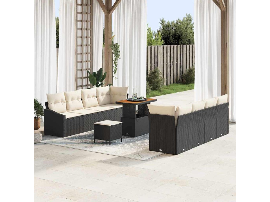 Sada zahradních pohovek s polštářem 11 pcs Černá a krémová [3364580]