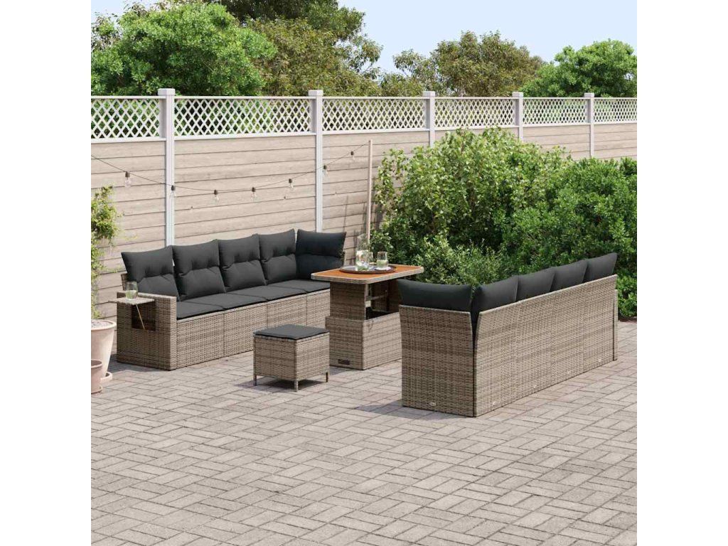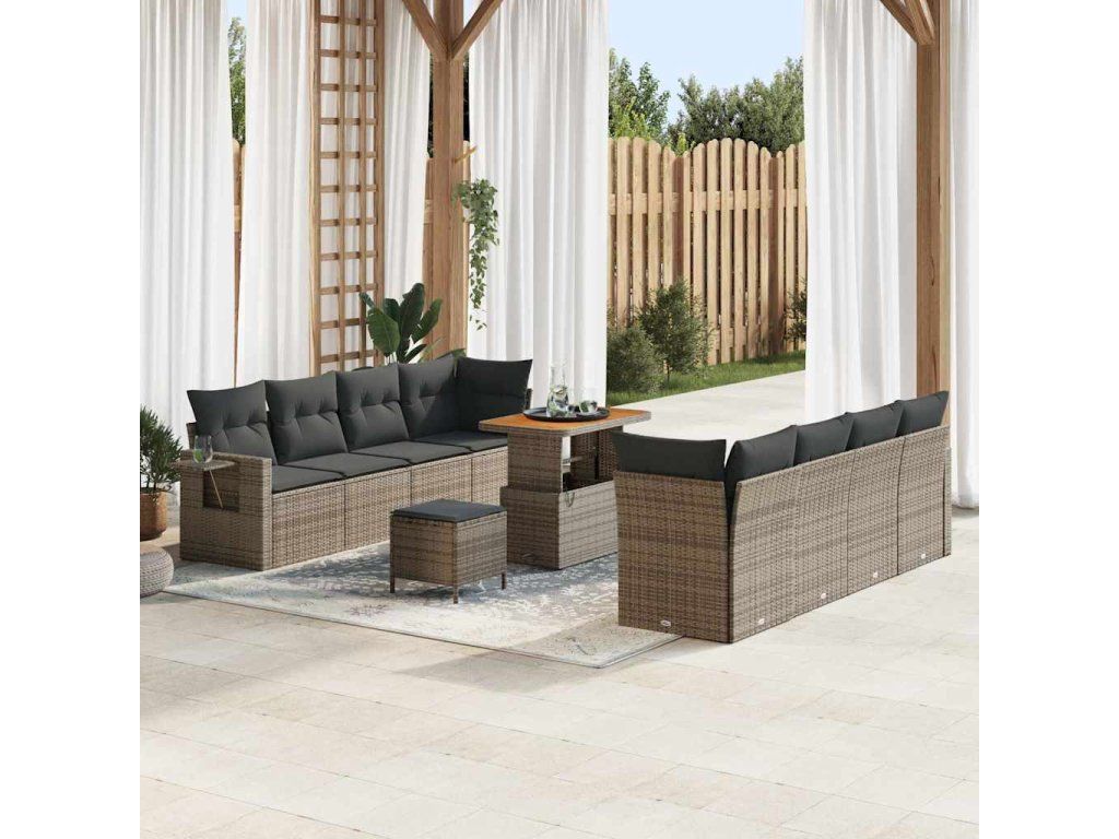 Sada zahradních pohovek s polštářem 11 pcs Šedá Poly ratan [3361723]