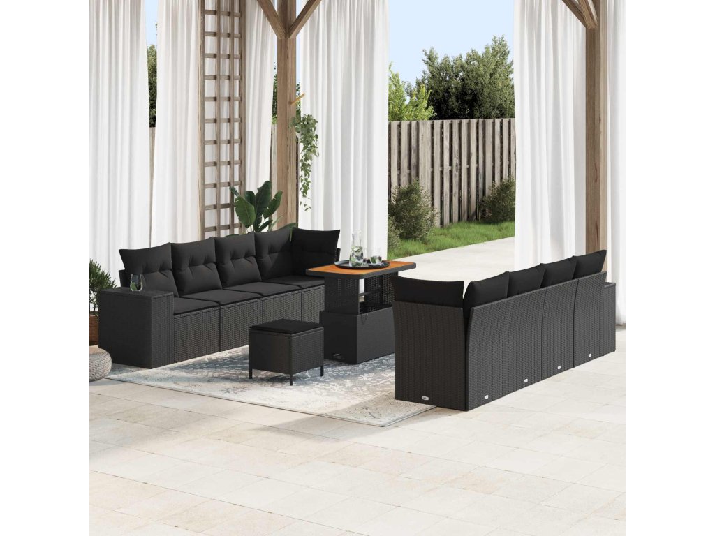 Sada zahradních pohovek s polštářem 11 pcs Černá polyratan [3363929]