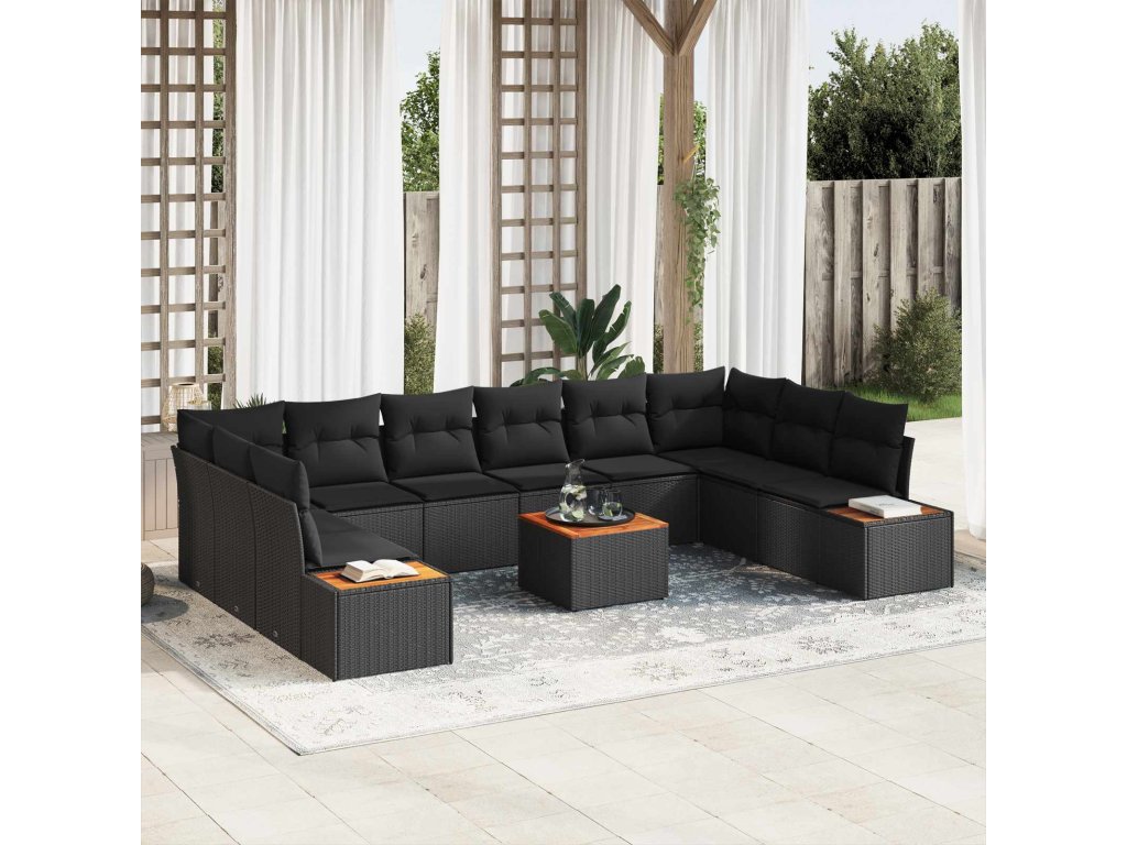 Sada zahradních pohovek s polštářem 11 pcs Černá Poly ratan [3356848]