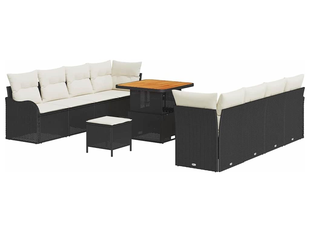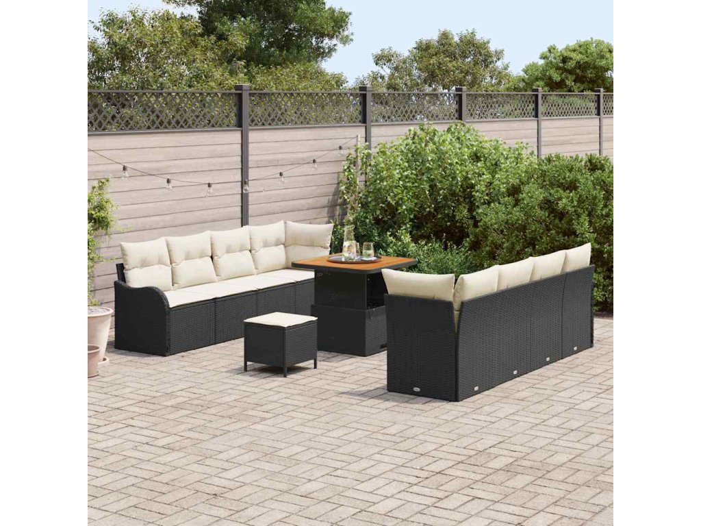 Sada zahradních pohovek s polštářem 11 pcs Černá a krémová [3364185]