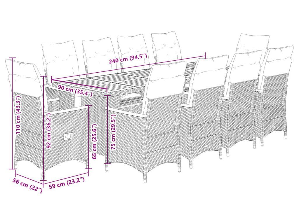 - Rozměry: 240 x 90 x 75 cm (D x Š x V)