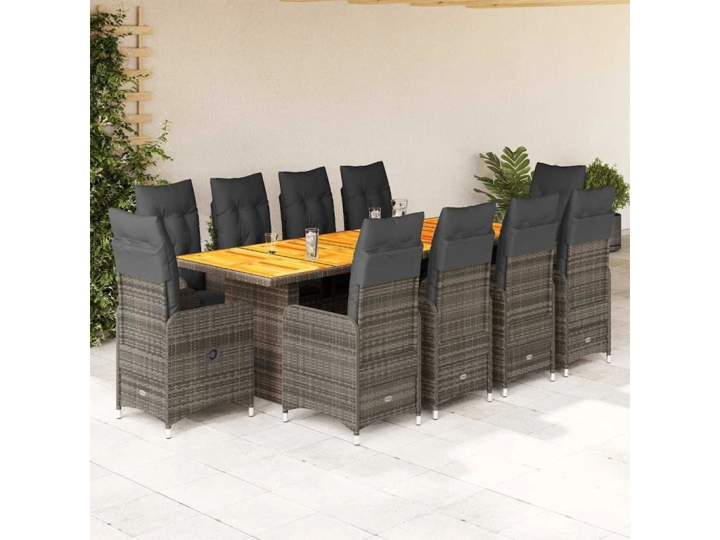 11dílný zahradní bistro set s poduškami šedý polyratan [3277278]
