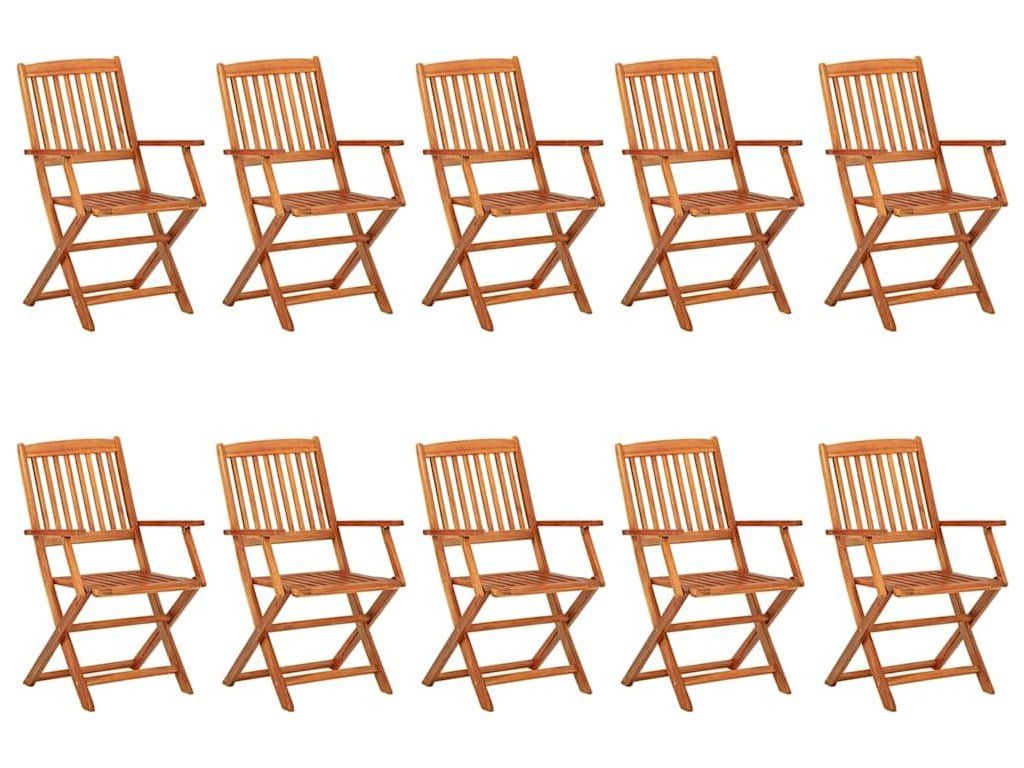 Venkovní jídelní set je vyrobený z masivní akácie, což je tropické tvrdé dřevo, které je odolné a výborně vzdoruje povětrnostním vlivům, takže vám vydrží sloužit po dlouhá léta. Olejovaný povrch se navíc snadno čistí vlhkým hadříkem. Pokud židle a stůl právě nepoužíváte, můžete je složit do kompaktní velikosti, aby vám zbytečně nepřekážely.