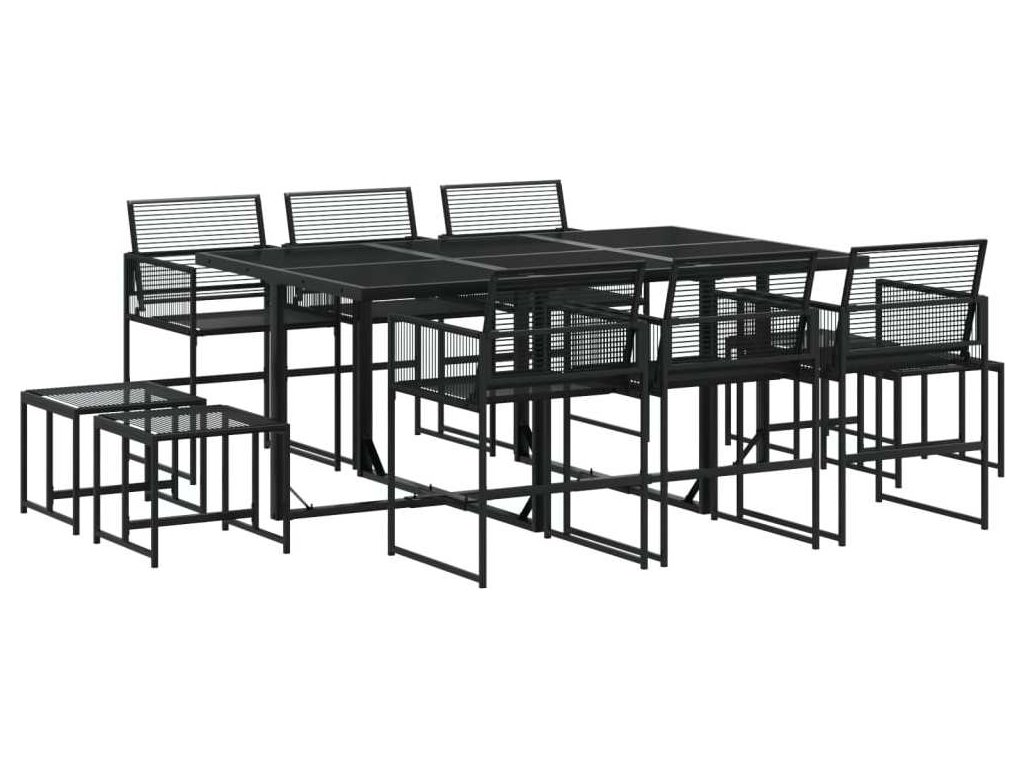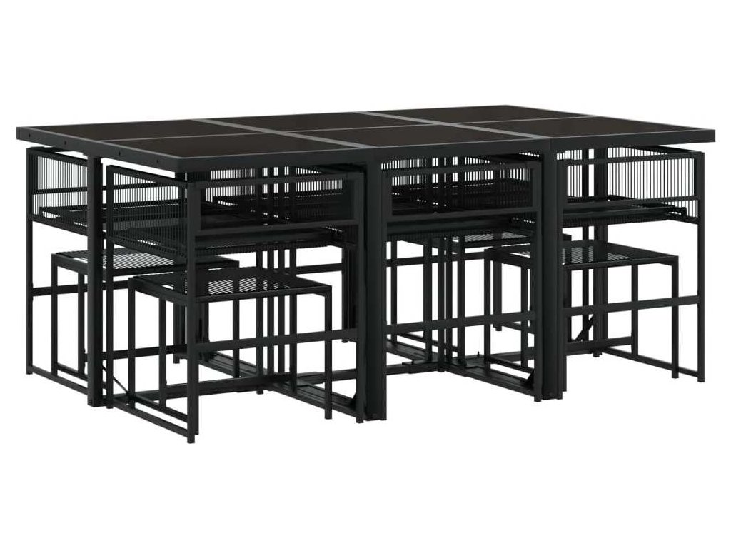 11dílný zahradní jídelní set černý polyratan [3295044]