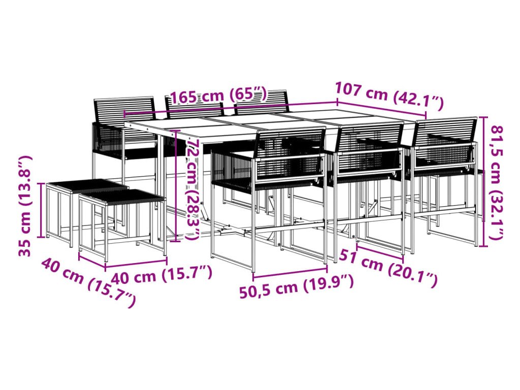 - Robustní a stabilní rám: Ocelový rám s práškovým nástřikem zajišťuje, že zahradní nábytek je pevný a stabilní pro každodenní venkovní použití.