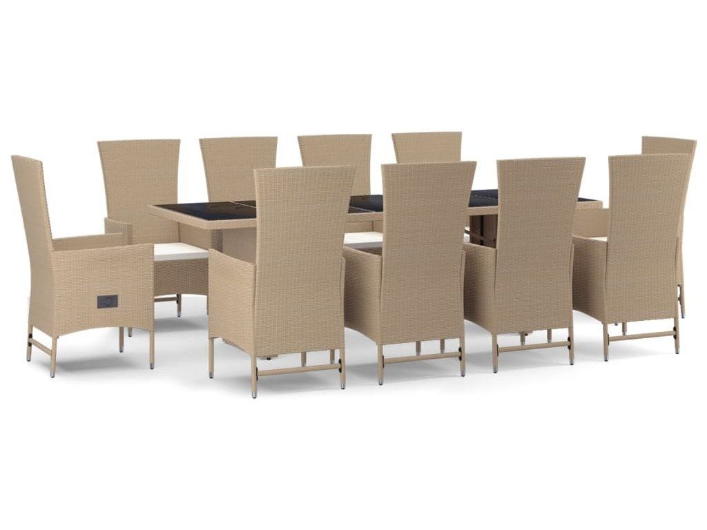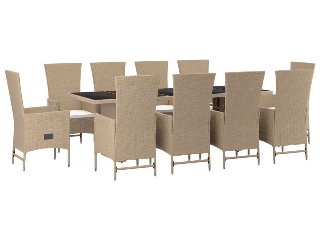 11dílný zahradní jídelní set s poduškami béžový polyratan [3157574]