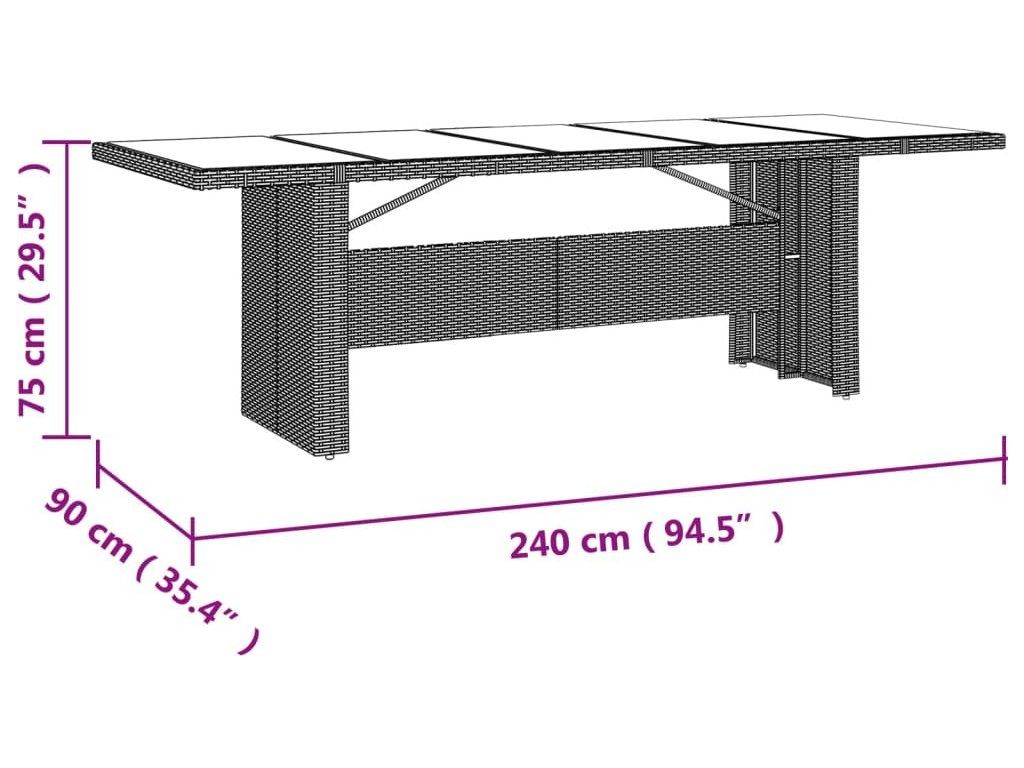 - Materiál: PE ratan, ocel, tvrzené sklo