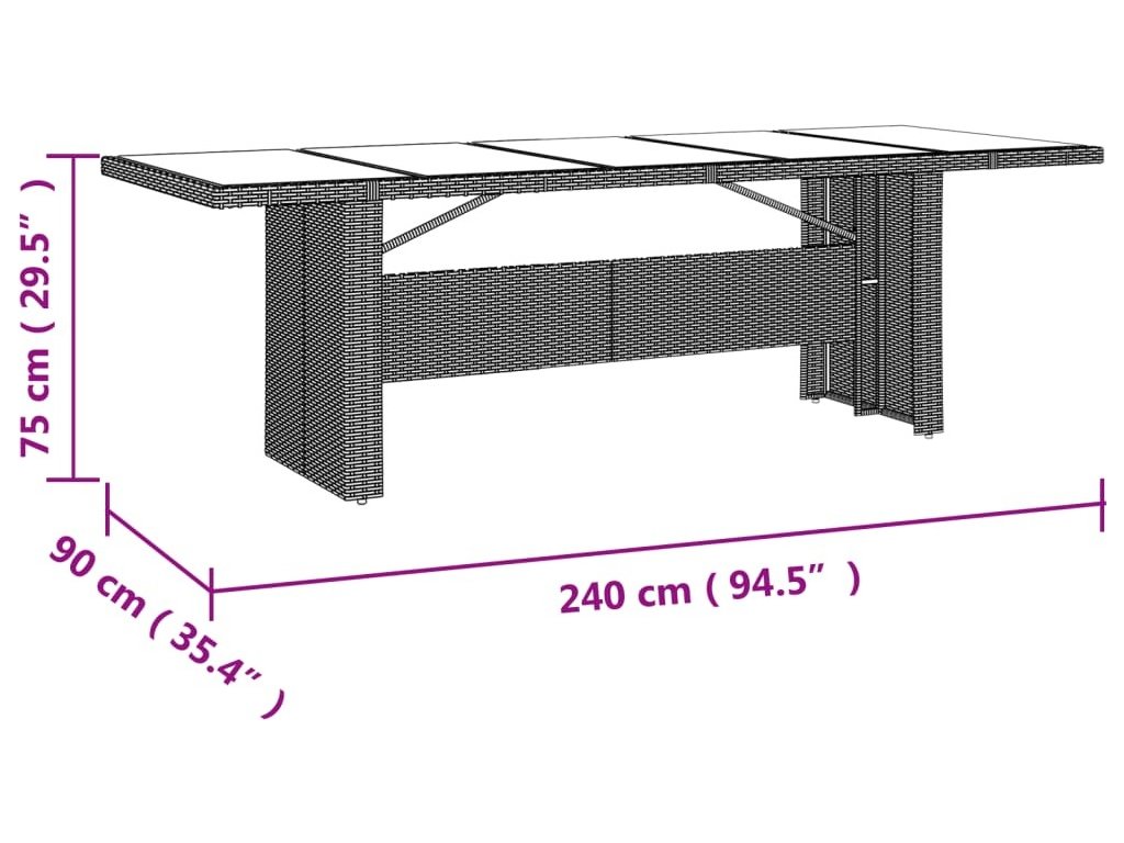 - Skleněná deska stolu: Deska venkovního stolu je zhotovena ze silného a odolného tvrzeného skla, takže ji snadno očistíte vlhkým hadříkem a zároveň do vašeho venkovního prostoru vnese nádech elegance.