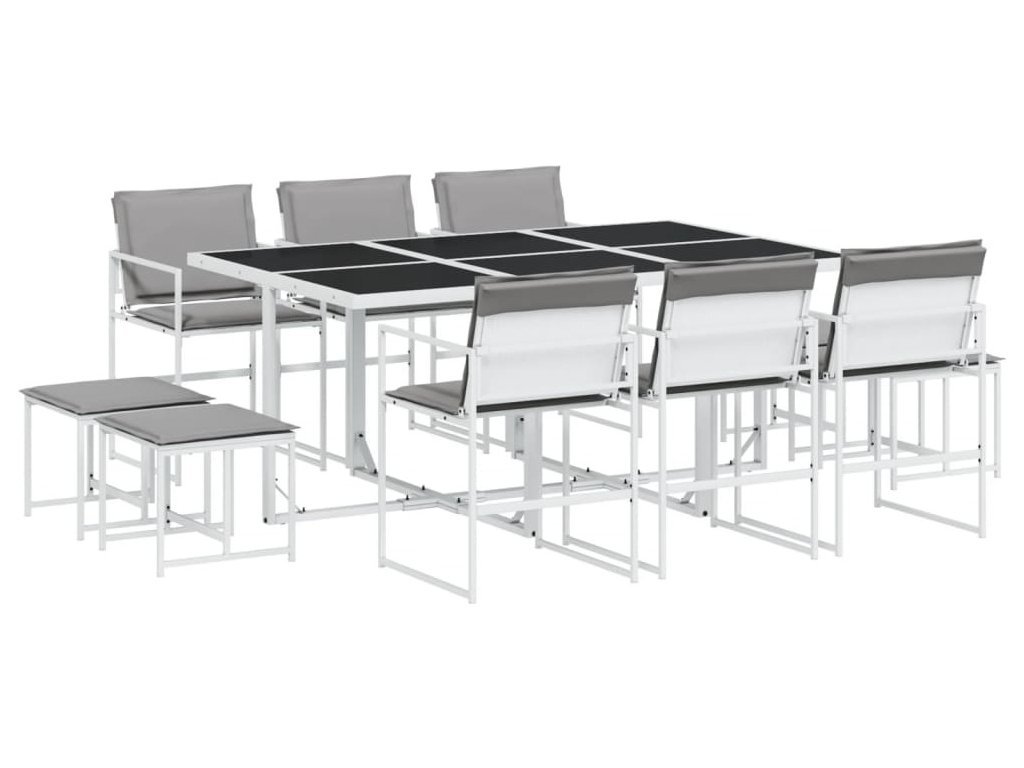 11dílný zahradní jídelní set s poduškami bílý textilen [3295099]