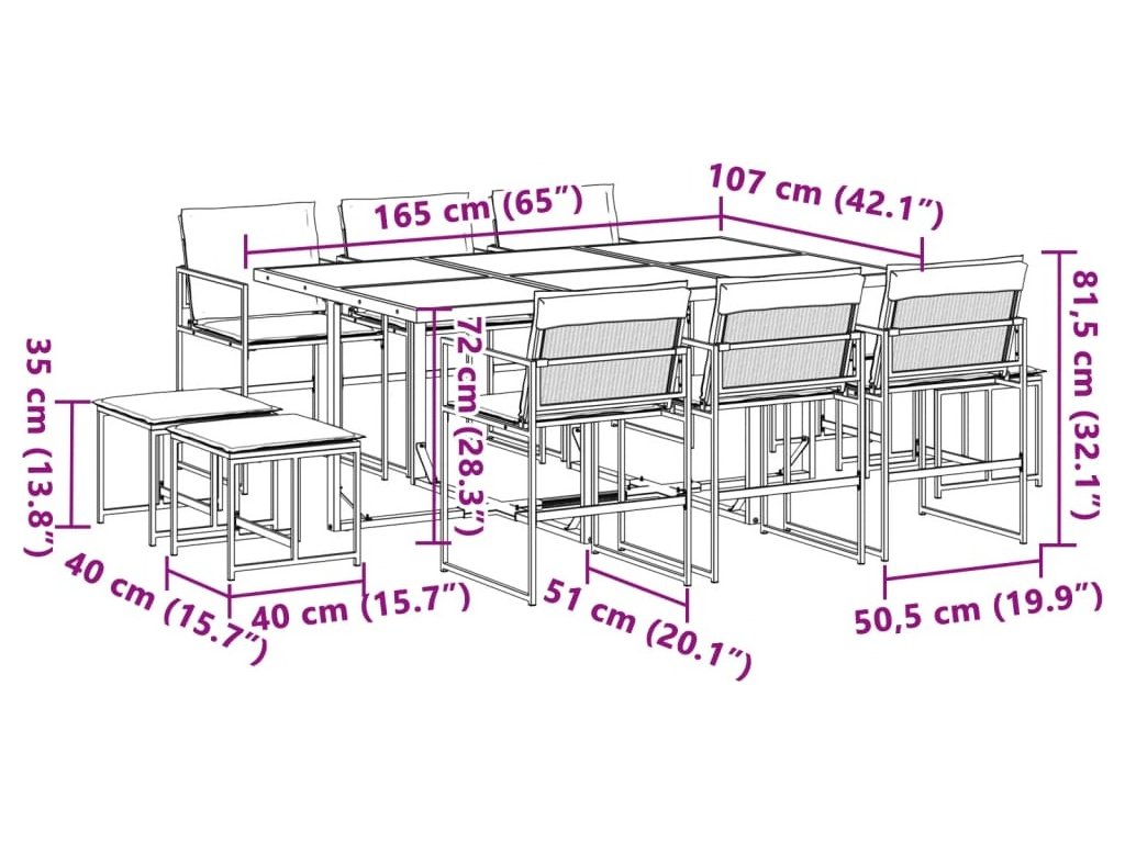 - Robustní a stabilní rám: Ocelový rám s práškovým nástřikem zajišťuje, že zahradní nábytek je pevný a stabilní pro každodenní venkovní použití.