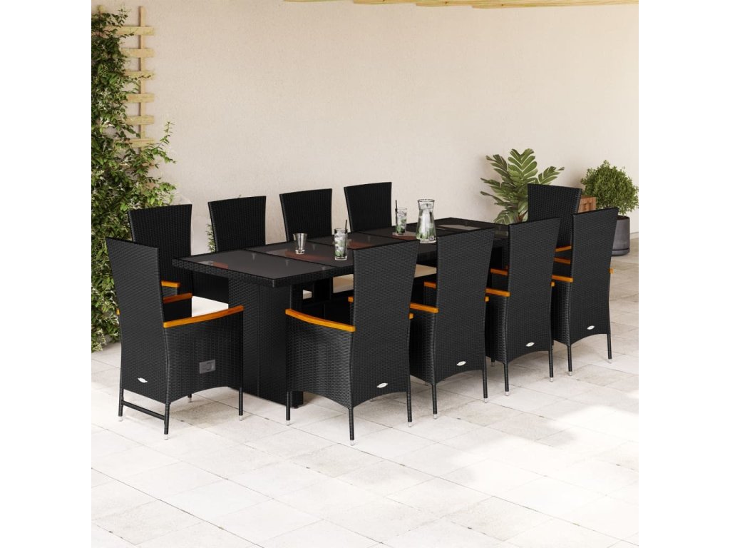 11dílný zahradní jídelní set s poduškami černý polyratan [3277537]