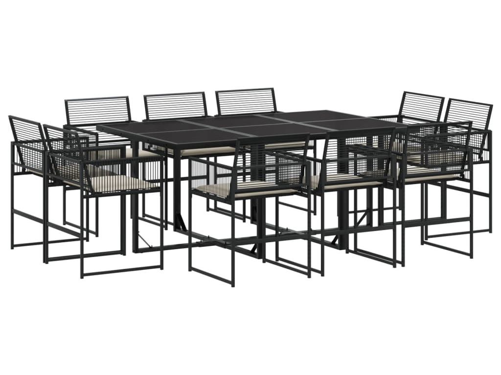11dílný zahradní jídelní set s poduškami černý polyratan [3295014]