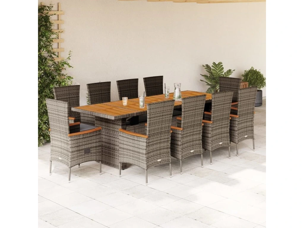 11dílný zahradní jídelní set s poduškami šedý polyratan [3277545]