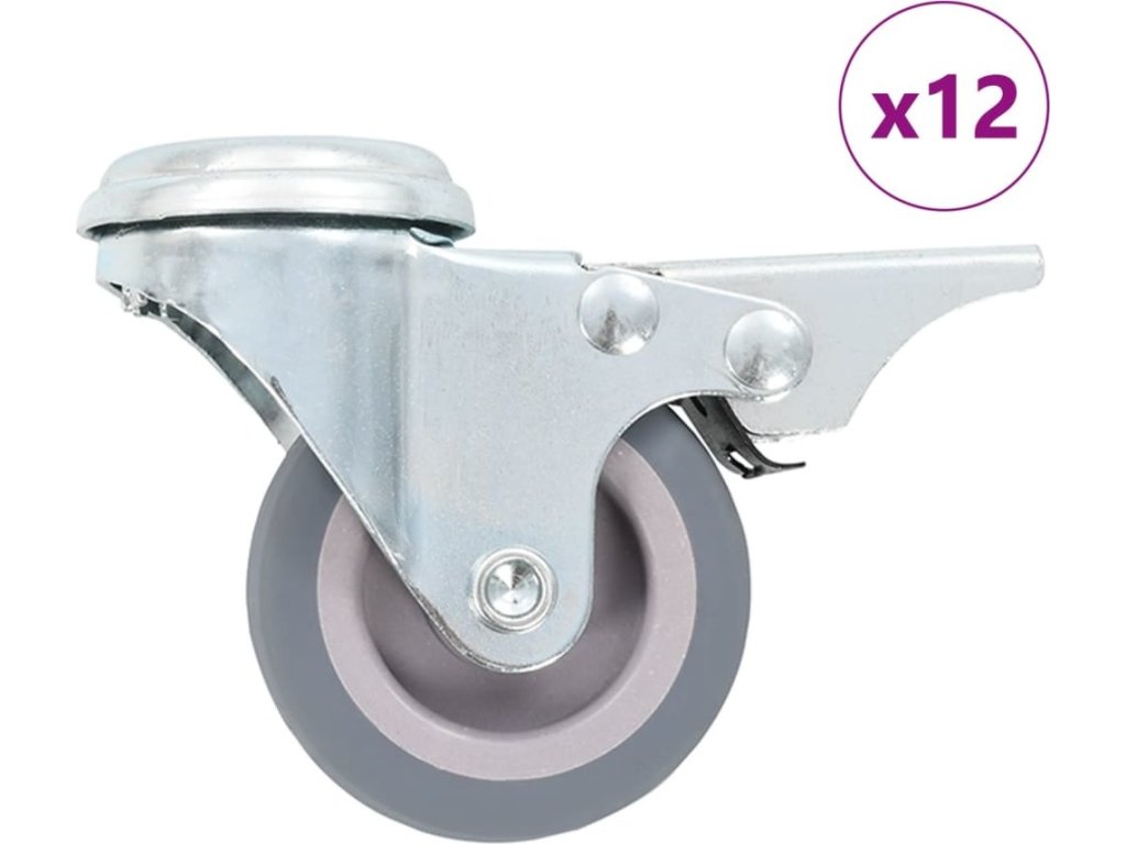 - Balení obsahuje 12 otočných koleček s otvorem pro šroub. Polovina koleček je vybavená brzdou.