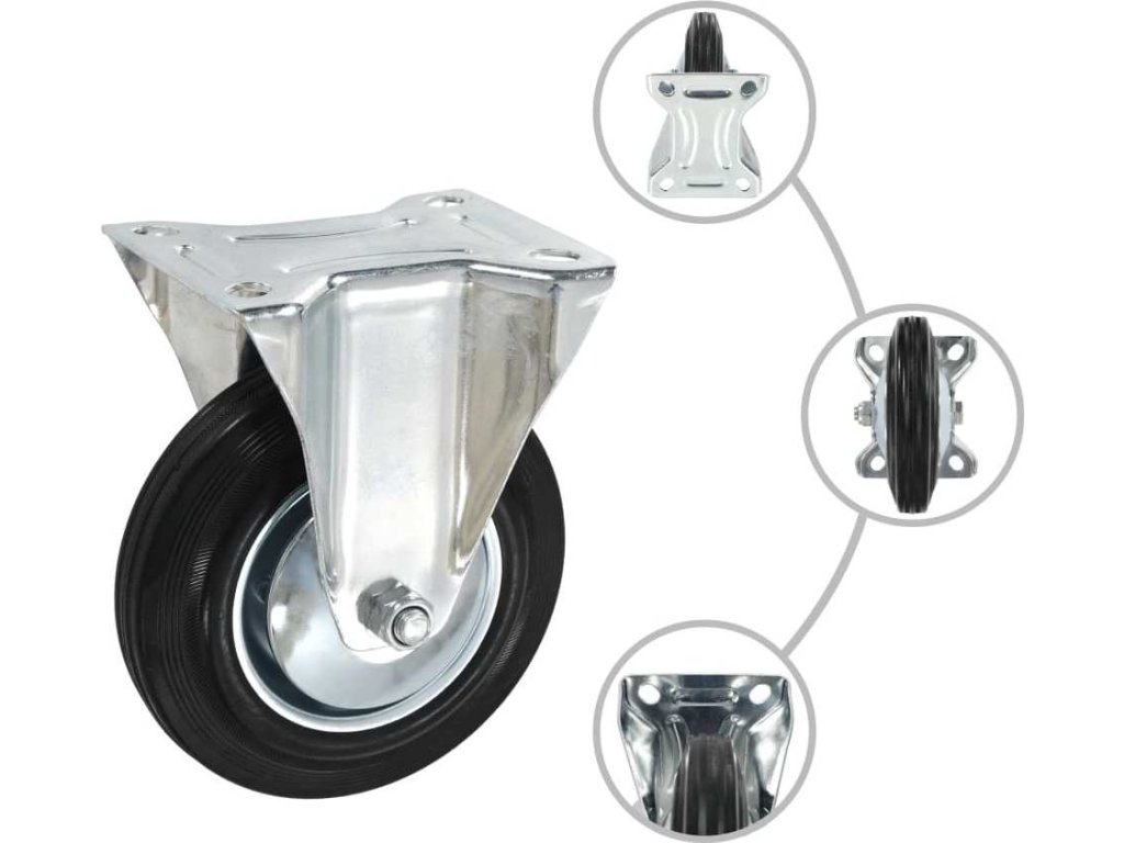 Kolečka jsou vyrobena z gumy, která je známá pro svou schopnost pohlcovat nárazy a vibrace. Ať už tedy kolečka namontujete na cokoliv, budete to moci přesouvat hladce a v tichosti. Jejich hladký povrch navíc ochrání vaši podlahu před poškrábáním. Zinkem potažený ocelový rám je odolný proti rzi, dodává kolečkům na odolnosti a prodlužuje jejich životnost. Každé kolečko má maximální nosnost až 150 kg.