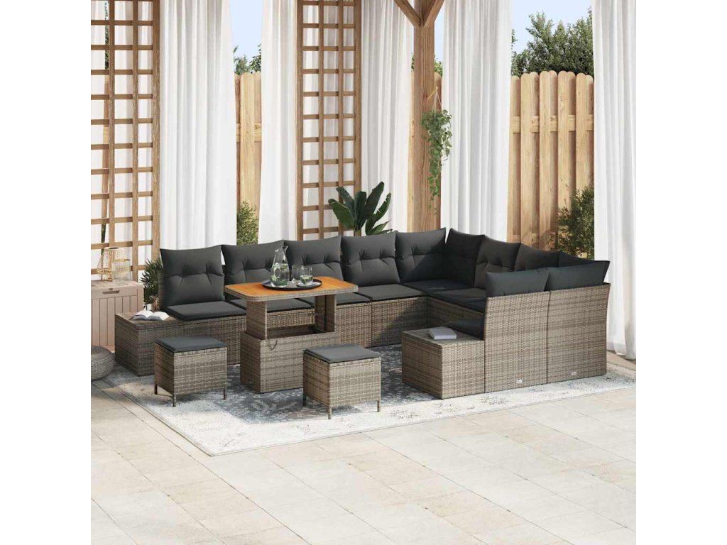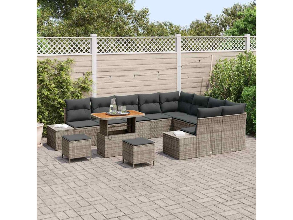 Sada zahradních pohovek s polštářem 12 pcs Šedá Poly ratan [3364778]