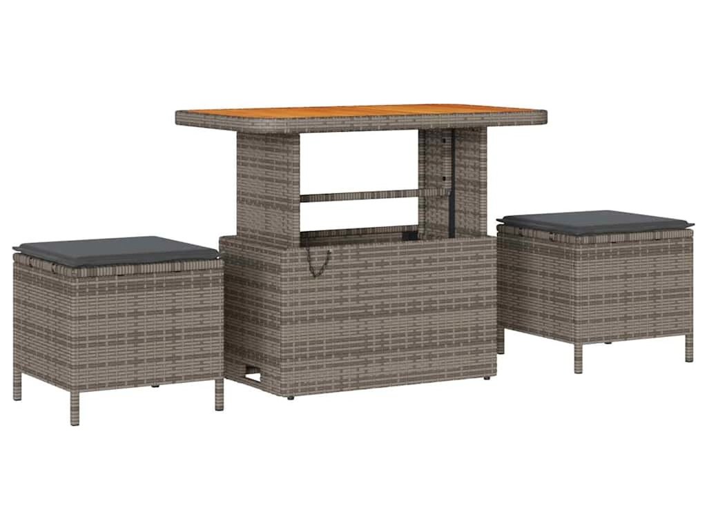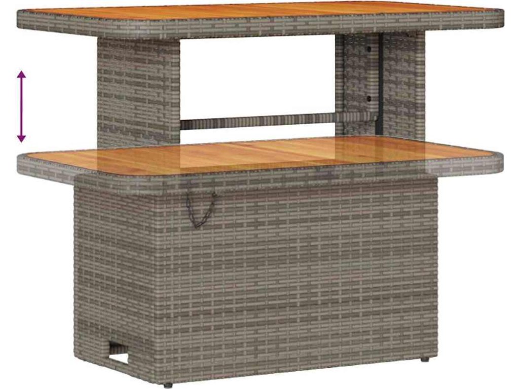 - Akáciové dřevěné detaily: Masivní akáciové dřevo dodává teplý vzhled. Je silné a zvládá i změny počasí bez ztráty krásy. Pečlivě zpracované, je spolehlivým povrchem stolu a vypadá skvěle.