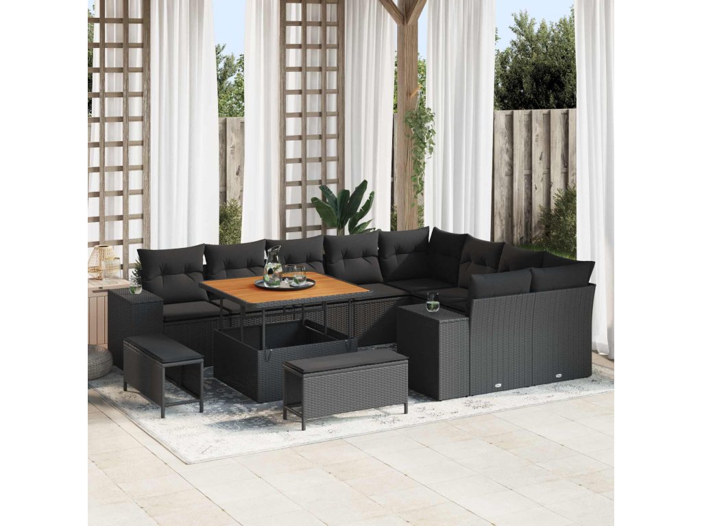 Sada zahradních pohovek s polštářem s úložištěm 12 pcs Černá [3363984]