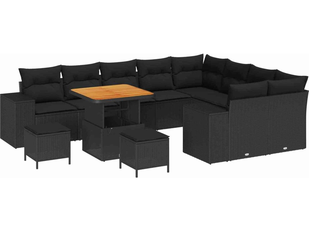 Sada zahradních pohovek s polštářem s úložištěm 12 pcs Černá [3363989]