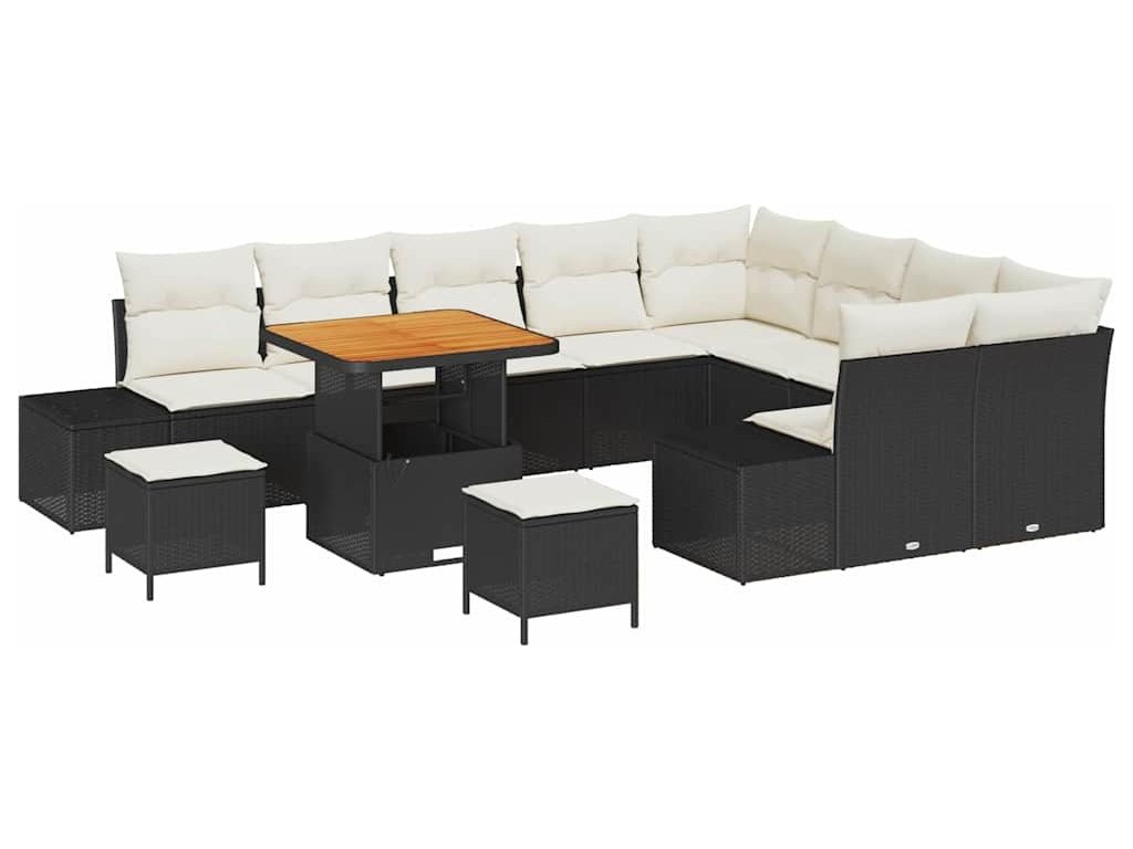 Sada zahradních pohovek s polštářem 12 pcs Černá a krémová [3364770]
